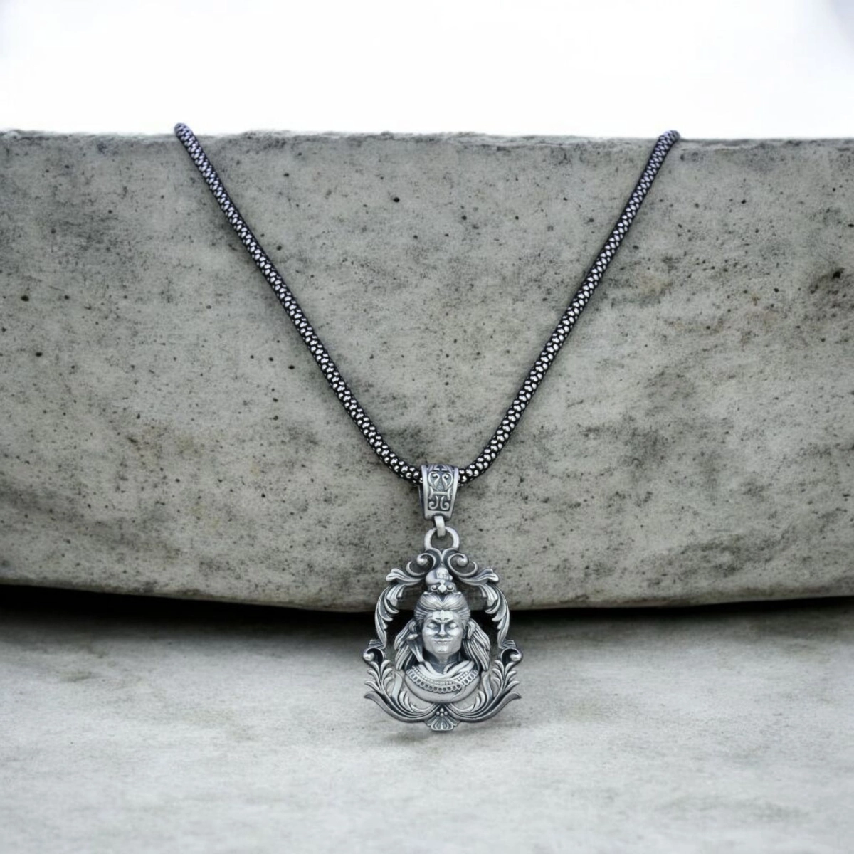Artistic Lord Shiva Locket with Popcorn Chain – 925 Silver