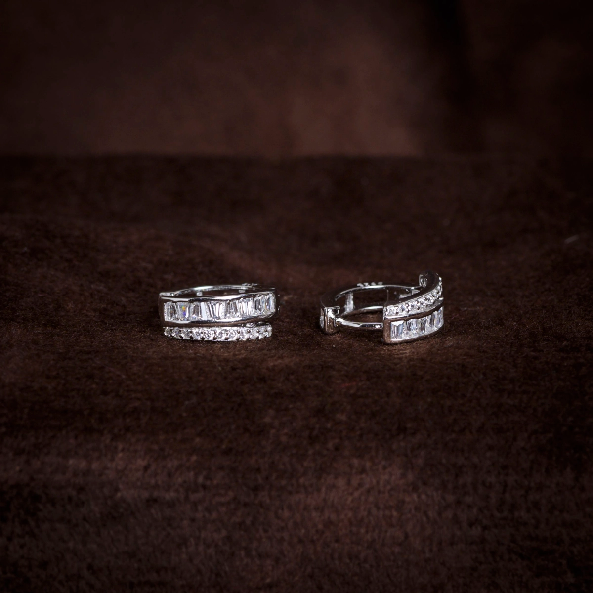 • Earrings: Baguette CZ huggie hoops with hinged closure