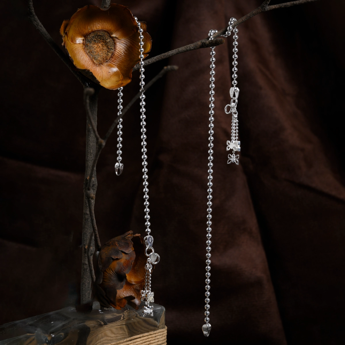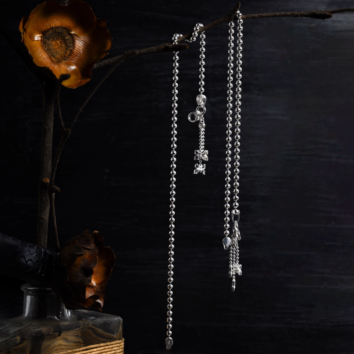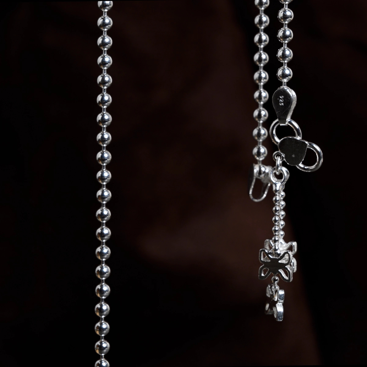 These Beaded Charm Anklets are a lively pair of 925 silver anklets with delicate bead links and dangling charm details, blending tradition with modern playful elegance.