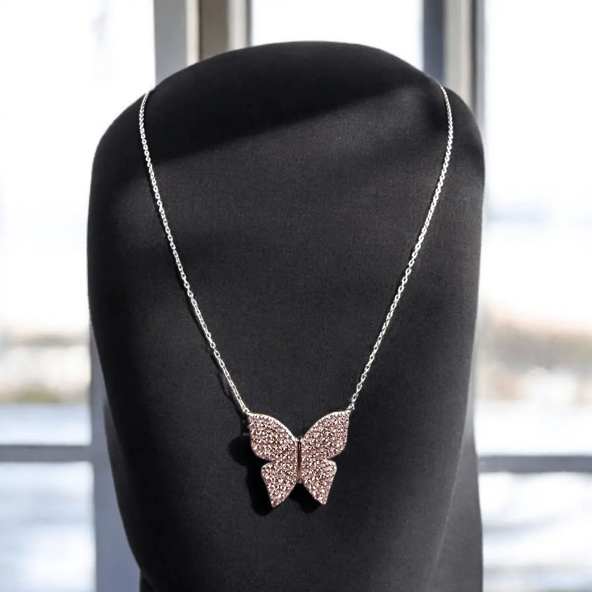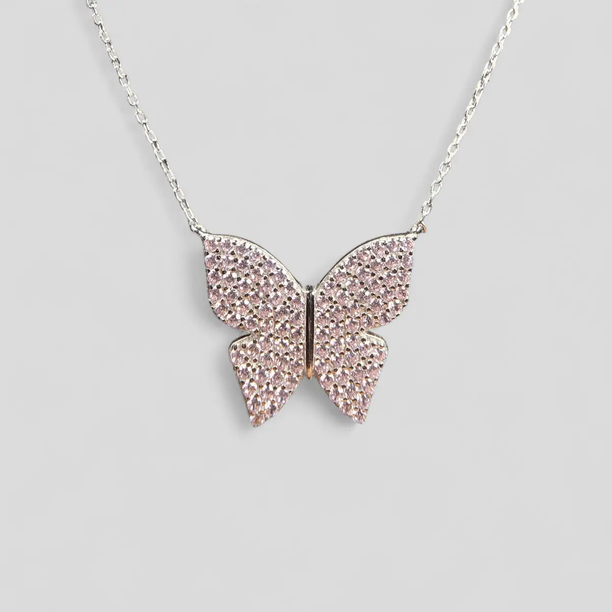 Blush Flutter Necklace – Pink Crystal Butterfly in 925 Silver