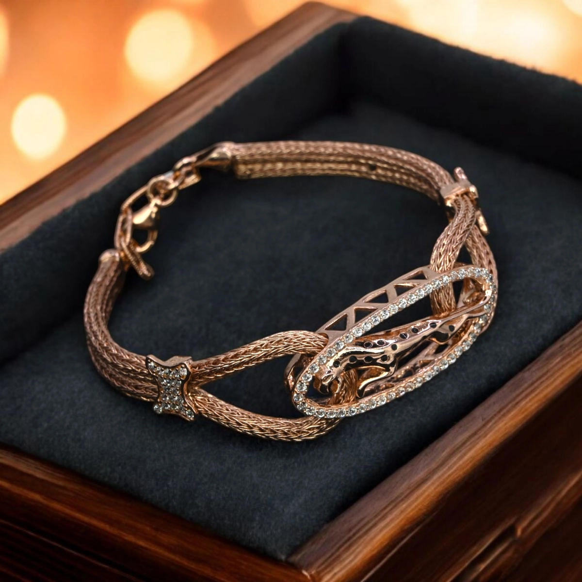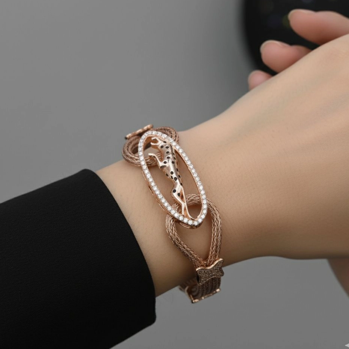 1. A Bold Rose Gold Panther Statement Bracelet