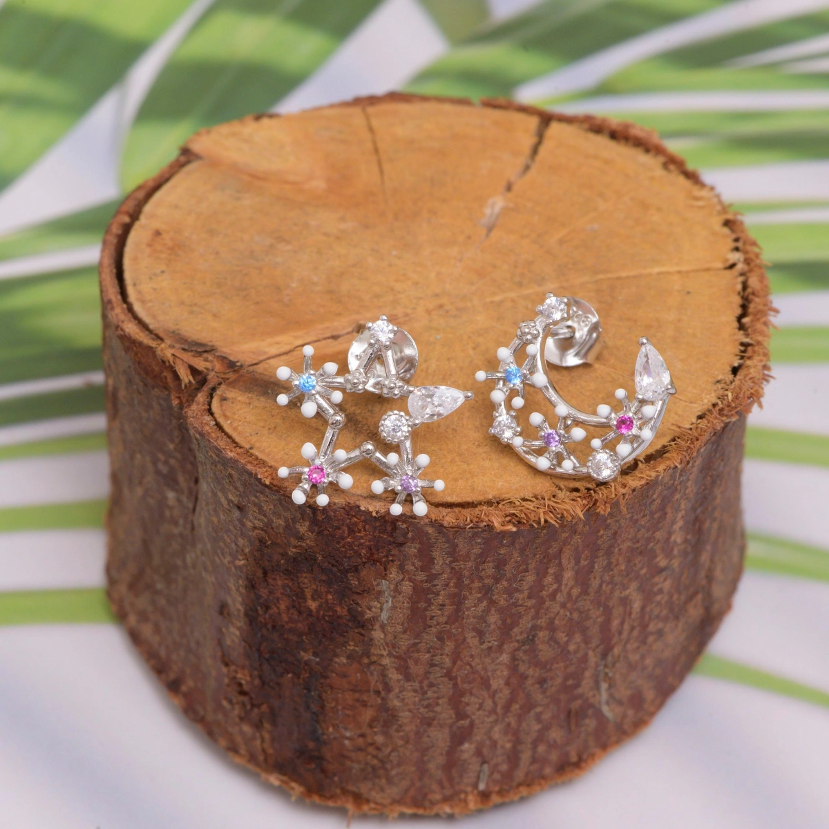 Step into a galaxy of style with the Celestia Multicolor Starburst Earrings, designed to bring a cosmic sparkle to your jewellery collection. Handcrafted in pure 925 sterling silver, these earrings showcase an enchanting constellation design, accented with multicolored cubic zirconia stones in hues of blue, pink, and violet. Each stone is delicately set among white enamel-tipped starburst details, creating a dreamy celestial aesthetic. Their lightweight yet striking structure makes them perfect for both everyday wear and festive occasions, blending charm with elegance in every sparkle.