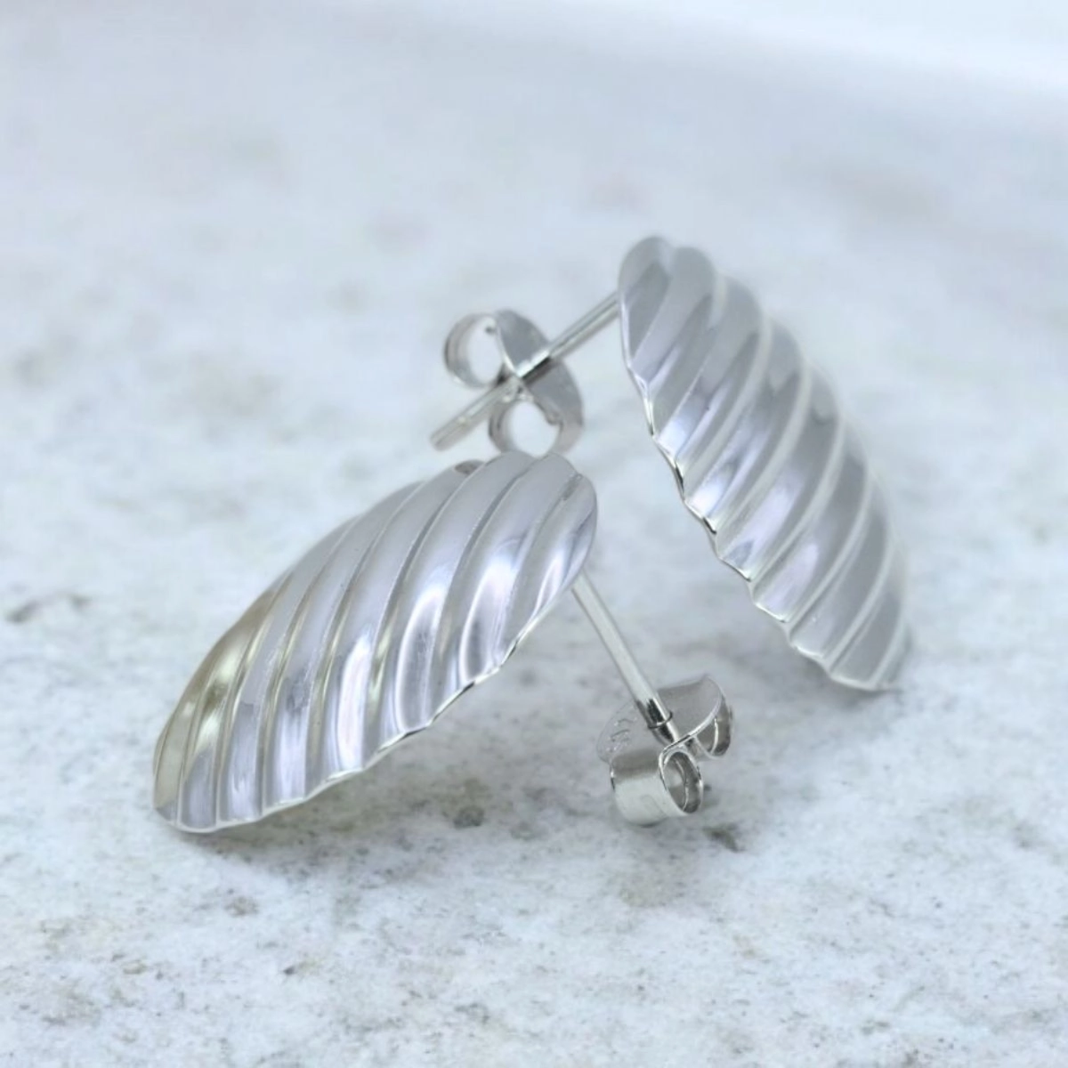Embrace the sculptural trend with our Chic Polished Croissant Stud Earrings. These stunning studs are designed to be a centerpiece accessory, offering a bold yet refined statement that captures the essence of modern luxury. The earrings feature a large, convex shape with a distinctive corrugated or fluted texture. This polished surface reflects light beautifully, creating a dynamic, fluid shine. Relying solely on the brilliance and structure of the metal, this design proves that true elegance lies in powerful form. They fasten securely and comfortably with a classic post back.