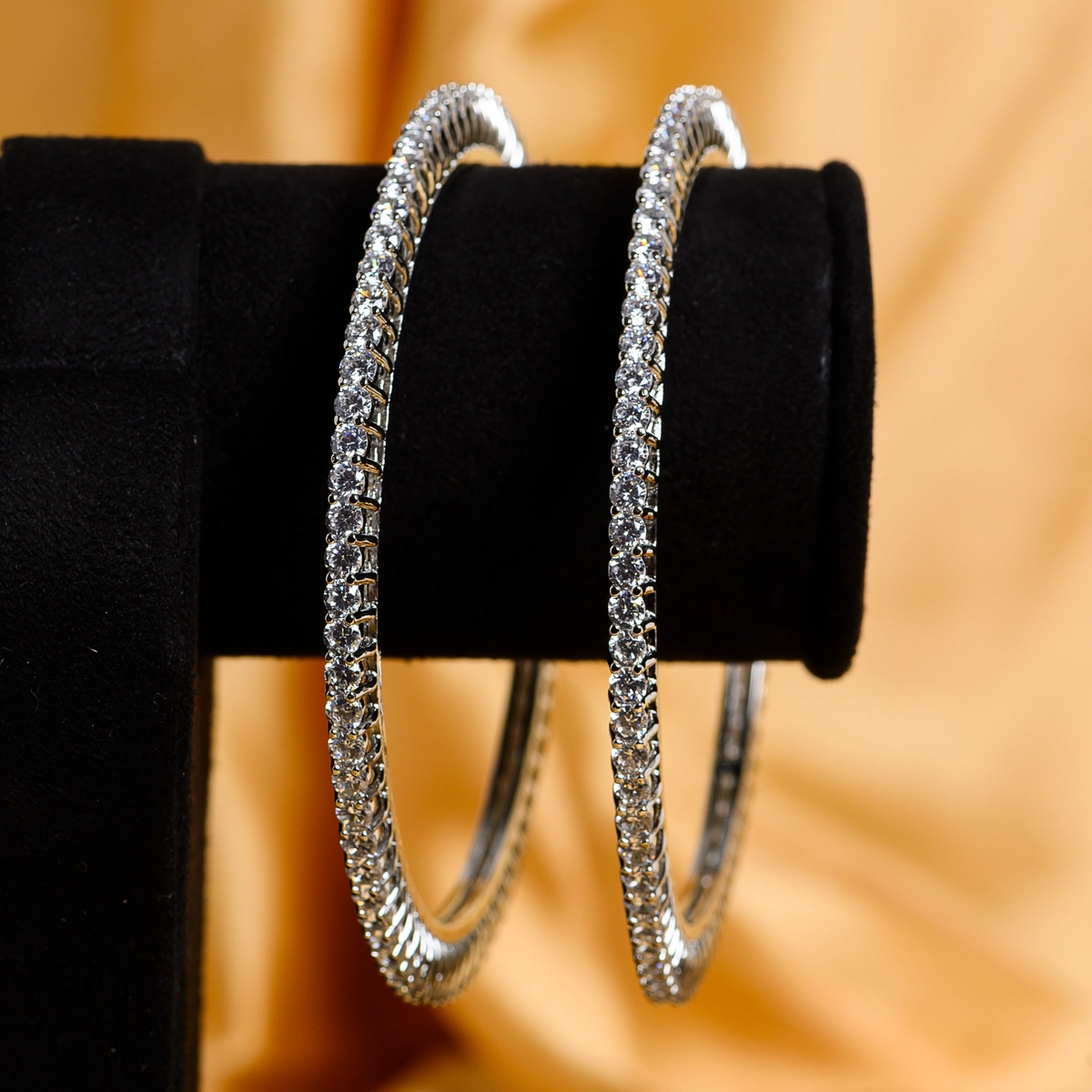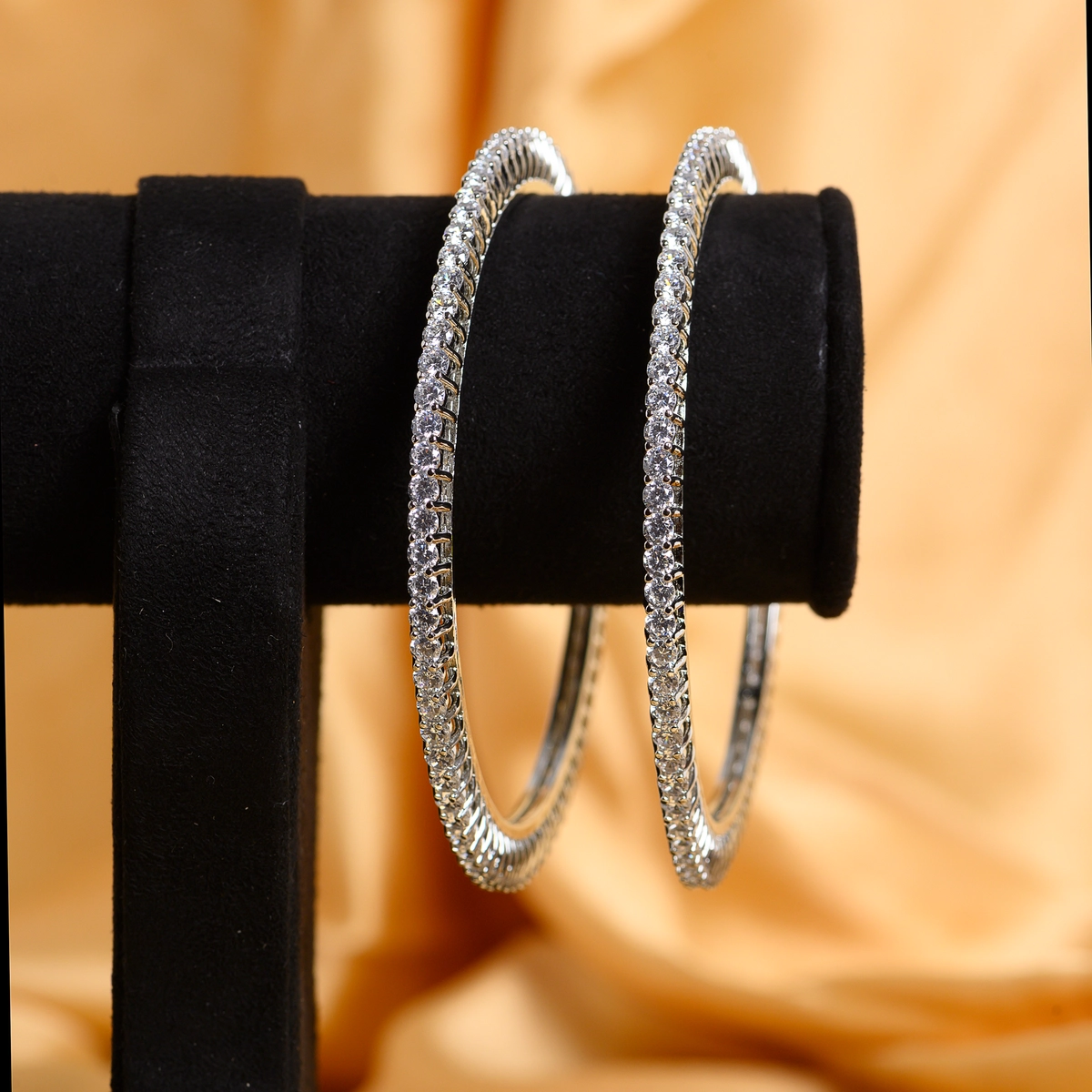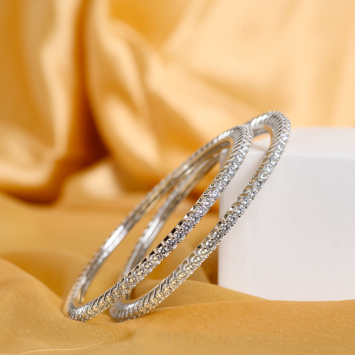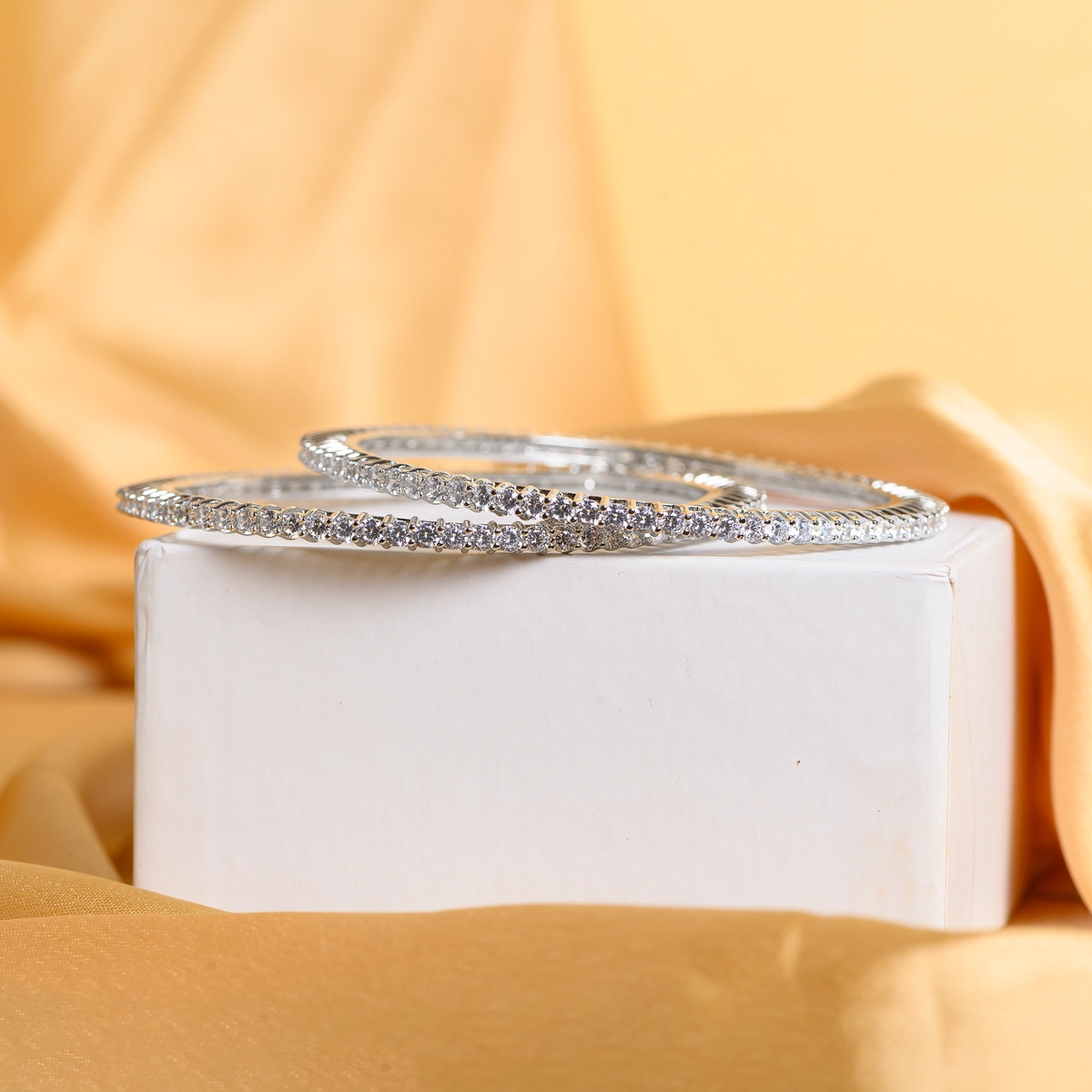 Add effortless elegance to your look with these Classic CZ Eternity Bangles, designed in pure 925 sterling silver. Featuring a seamless line of high-quality cubic zirconia stones, these bangles exude brilliance and sophistication. Their sleek, versatile design makes them perfect for daily wear, festive occasions, and layering with other jewellery pieces. A must-have for women who love understated yet radiant jewellery.