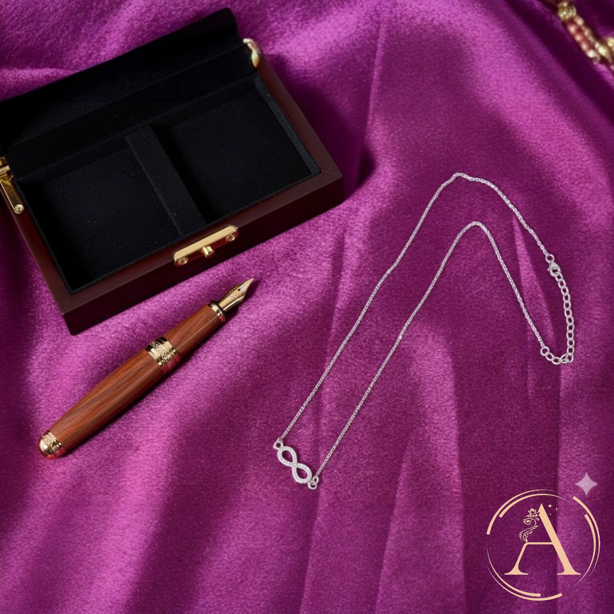 A symbol of endless possibilities and unbreakable bonds, our Classic Infinity Necklace is a staple for every jewelry collection. This piece is crafted from premium 925 sterling silver and showcases the iconic infinity symbol, a graceful loop of continuous brilliance. The top half of the symbol is meticulously adorned with a row of sparkling Cubic Zirconia (CZ) stones, catching the light with every movement. This elegant and understated design is the perfect way to represent eternal love, friendship, or personal strength. Its versatile charm makes it an effortless accessory for any occasion, whether you wear it alone for a minimalist look or layer it with other favorite necklaces.