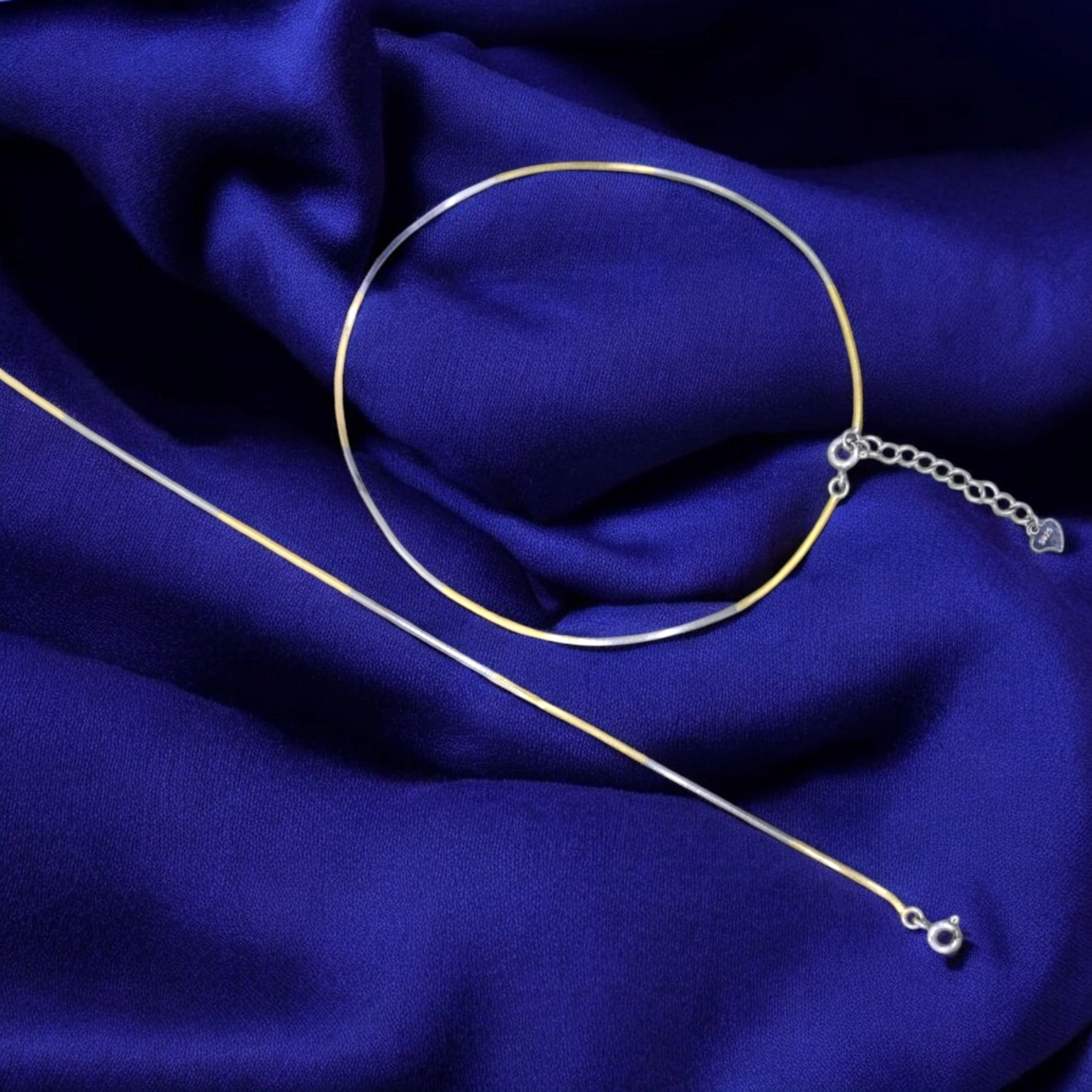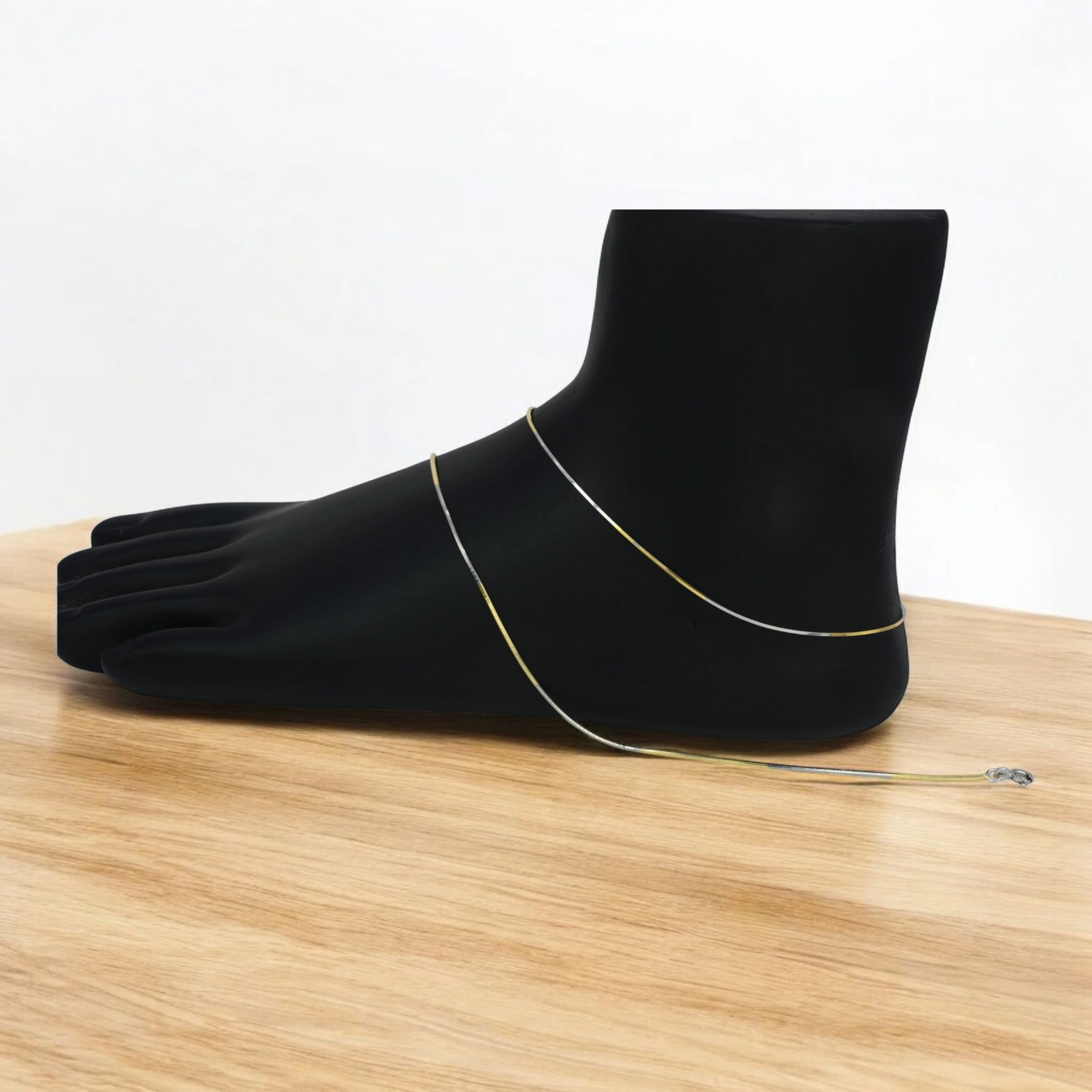 Dainty Dual-Tone Snake Chain Anklets – 925 Silver