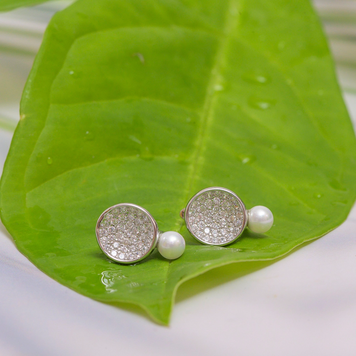 These versatile Disc Pearl Stud Earrings blend everyday ease with refined sparkle. A round pavé set disc catches light with a micro-crystal shimmer, balanced by a petite white pearl that softens the silhouette. Crafted in rhodium finished 925 sterling silver for lasting luster and hypoallergenic comfort, the lightweight design sits neatly on the lobe and pairs effortlessly with hoops or additional studs. Ideal for work, weekends, and special moments alike.eternz+2
