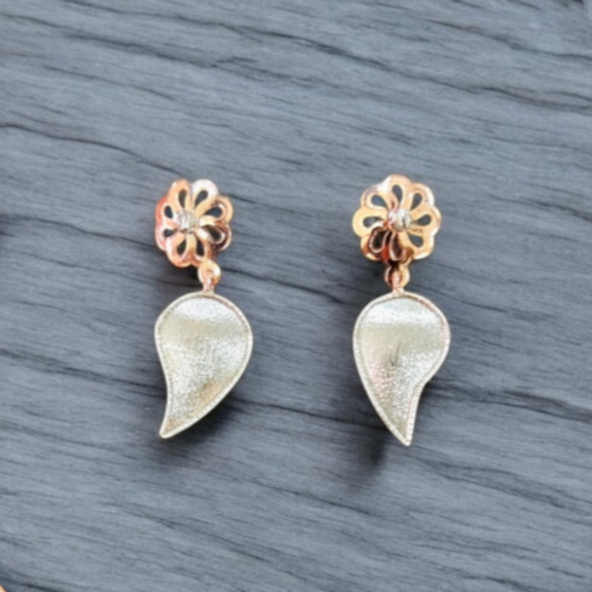 - Earring Style: Floral Studs with Leaf Drop (Push-back closure)