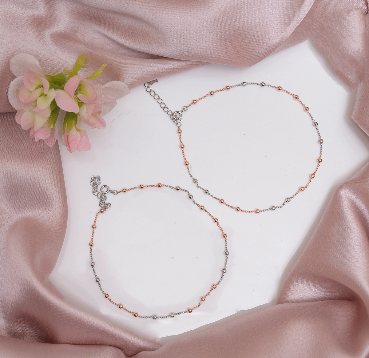Dual Tone Dotted Harmony Anklets – 925 Silver & Rose Gold Finish