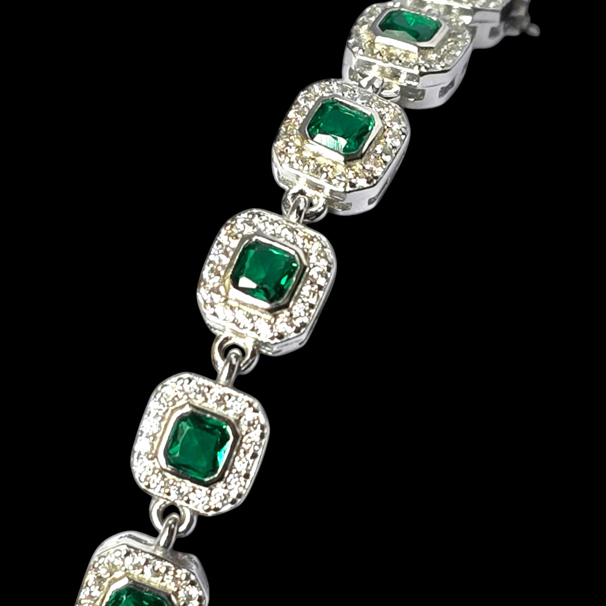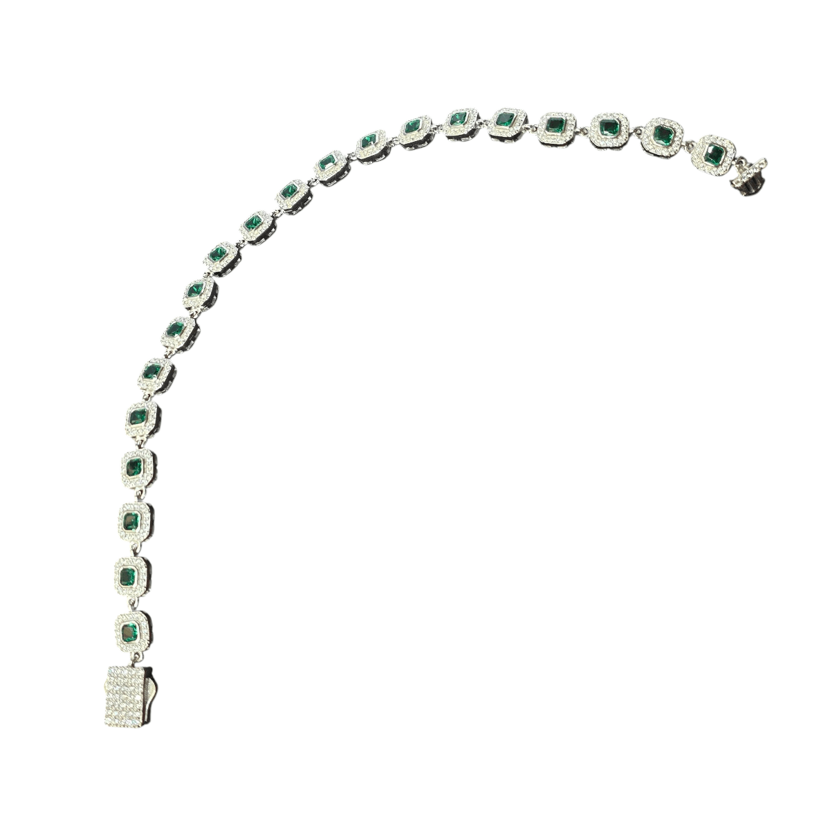Emerald CZ Bracelet – 925 Silver with White Rhodium Finish
