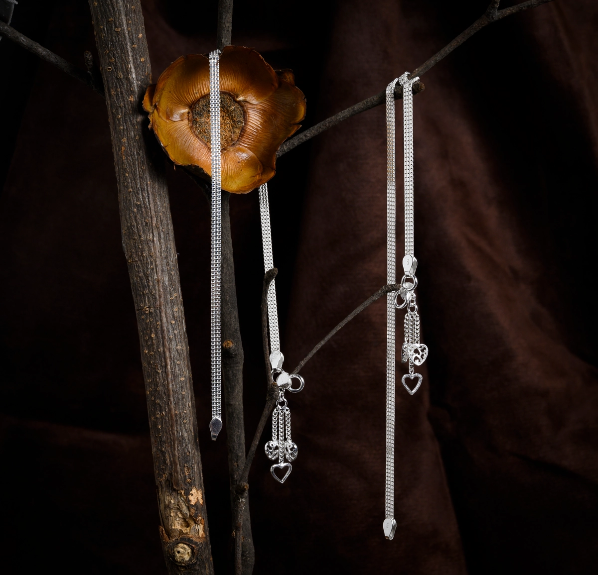 • Design: Dual Chain Anklets with Dangling Heart & Floral Motifs
