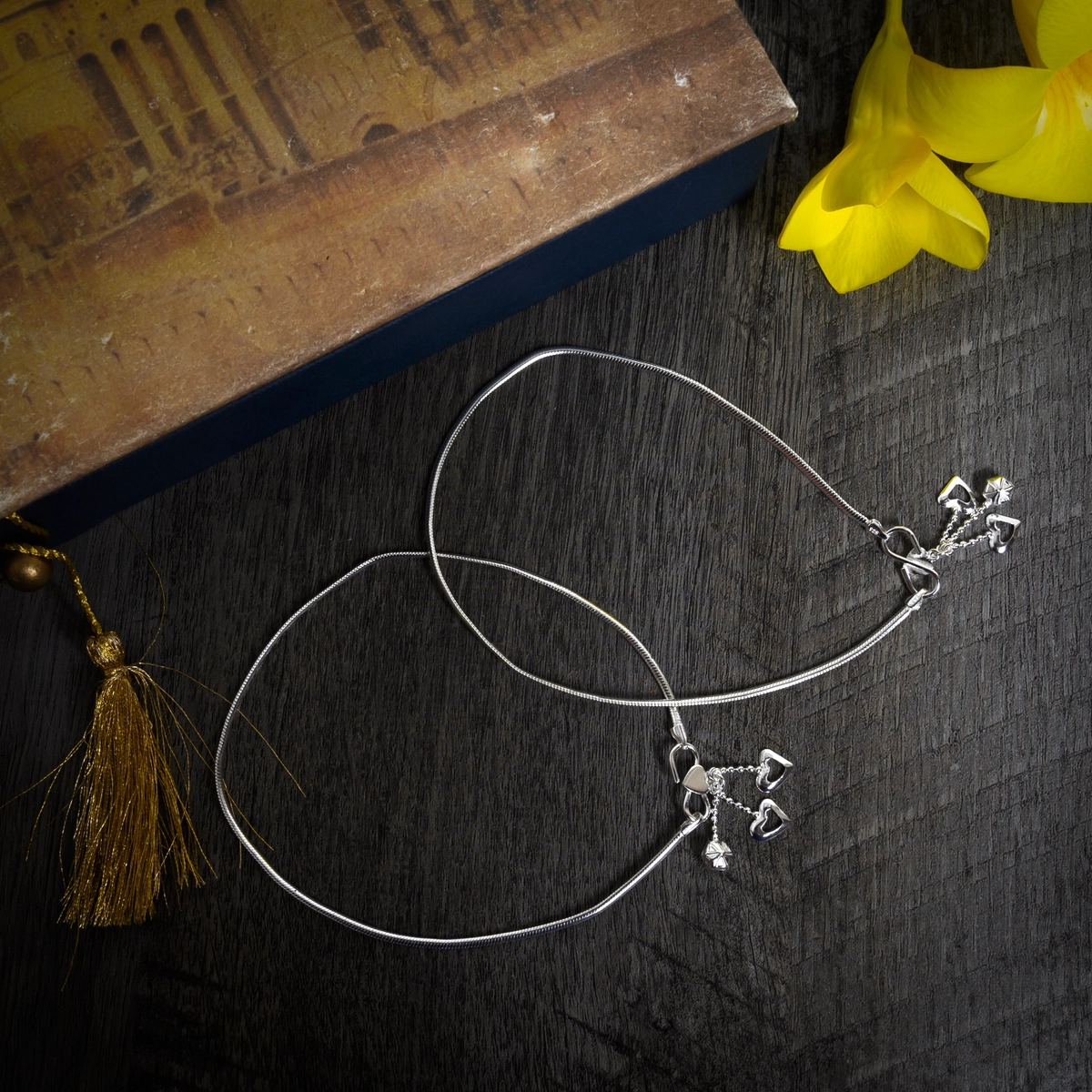 Heart Charm Anklets – Minimal Elegance with Dangling Accents in 925 Silver