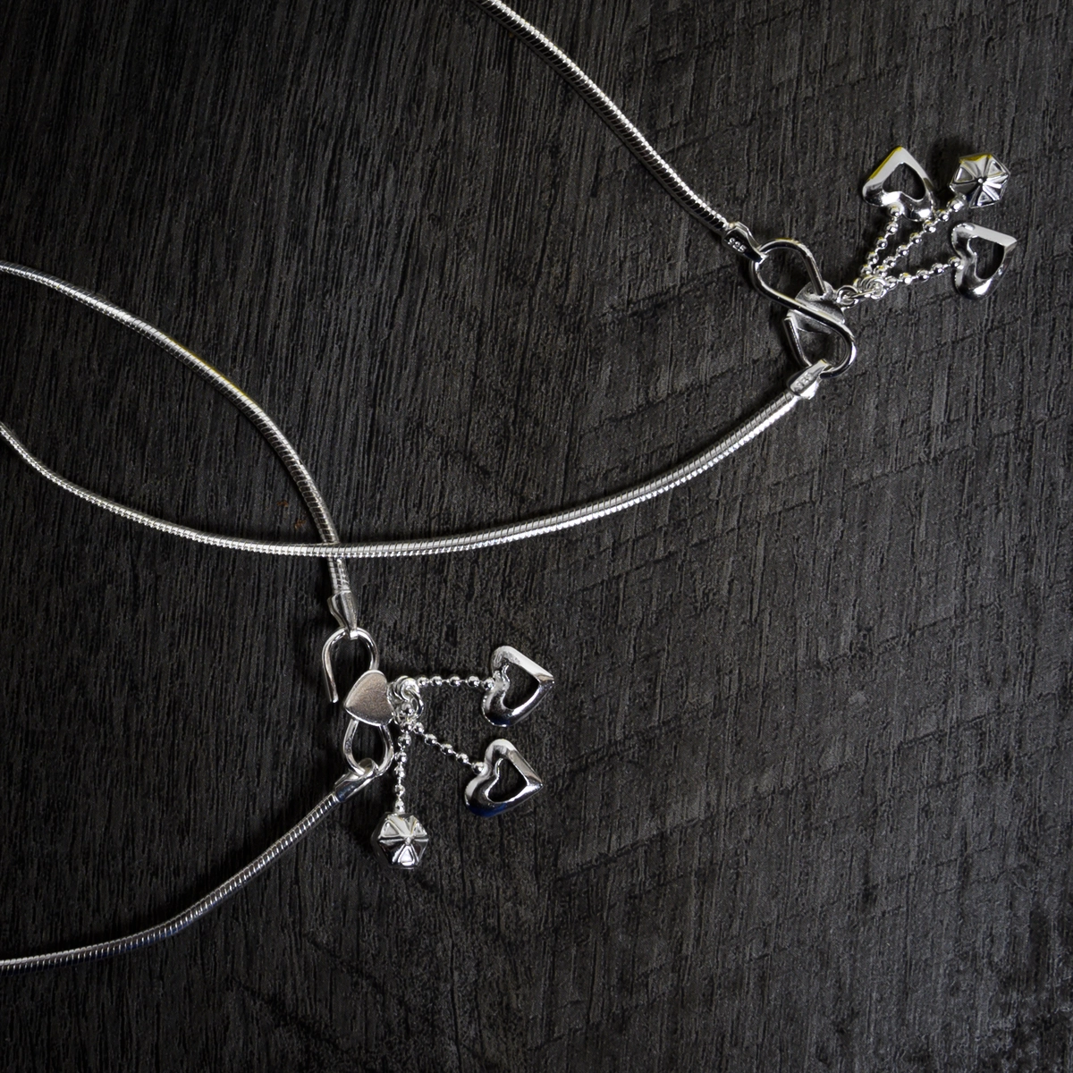 Delicate yet striking, this pair of 925 silver Heart Charm Anklets features sleek snake chains adorned with dangling heart charms and tiny accents, adding a playful sparkle to every step.