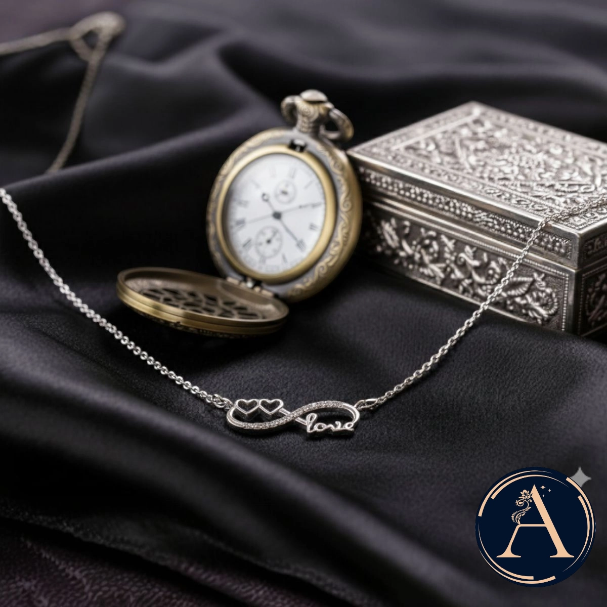 This is the ultimate symbol of a love that is endless, shared, and true. Our Infinity Hearts and Love Necklace is a masterpiece of sentiment, crafted from premium 925 sterling silver. The pendant features the timeless infinity symbol, representing forever, intertwined with two delicate hearts on one side and the elegant word “love” on the other. Each element is meticulously paved with shimmering Cubic Zirconia (CZ) stones, creating a breathtaking cascade of sparkle. This meaningful and detailed design perfectly encapsulates the essence of an unbreakable bond, a shared heart, and boundless affection. It’s the ideal gift for anniversaries, Valentine’s Day, or any occasion where you want to express the full depth of your love.