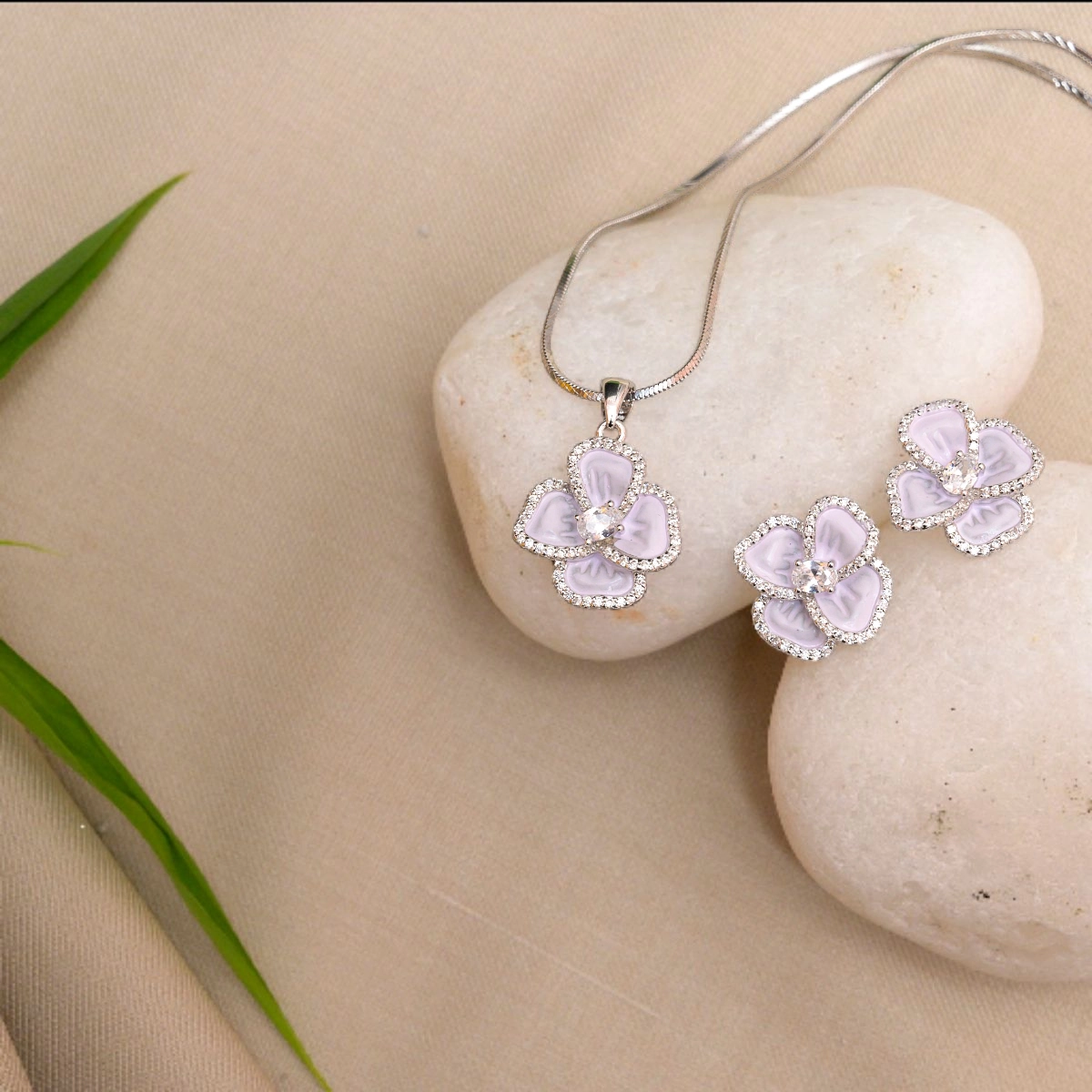Sweet Lavender Petal Bloom Pendant Set | 925 Silver- Aharshi