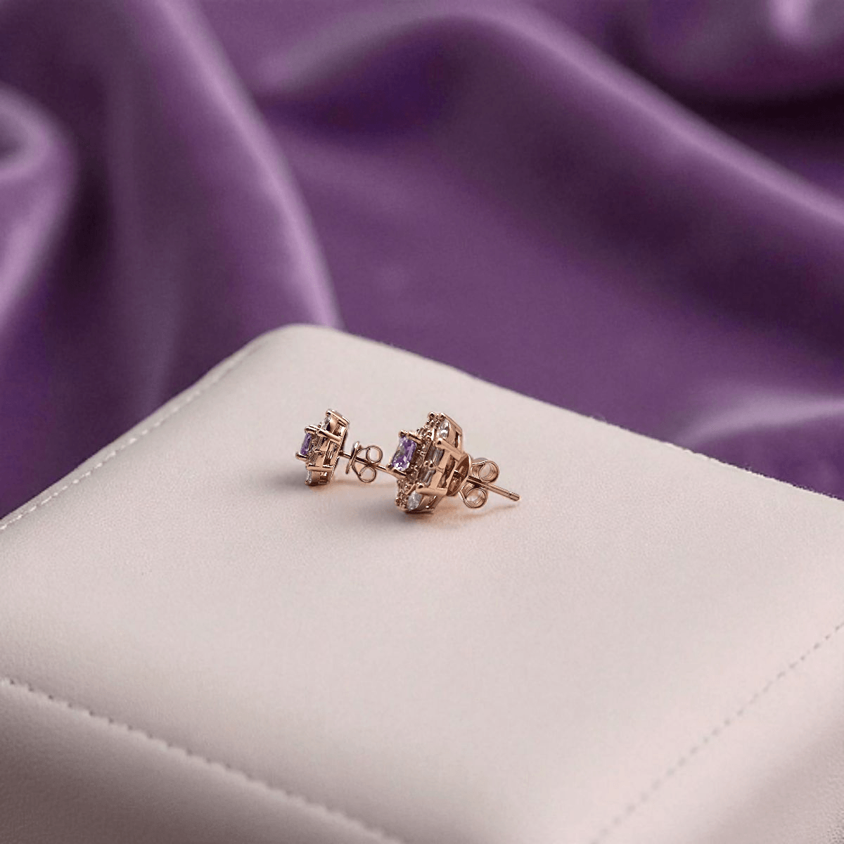 Lavender Prism Studs – Sparkling 925 Silver & Rose Gold Finish