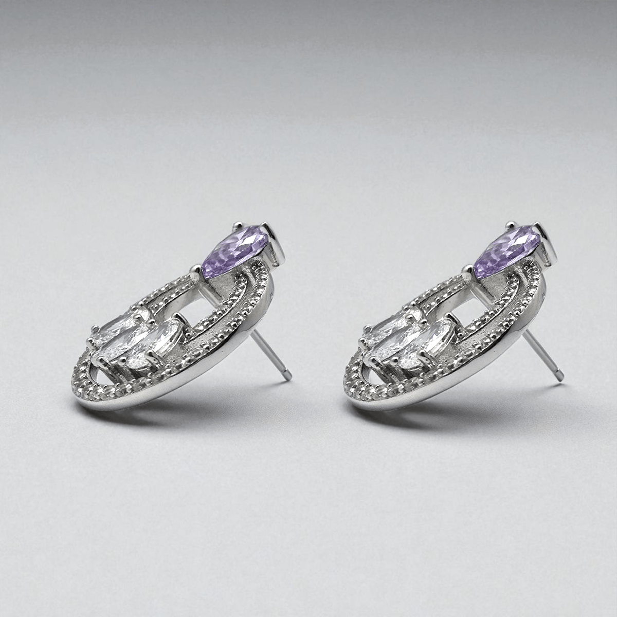 Lilac Orbit Studs – Violet Teardrop Sparkle in 925 Silver