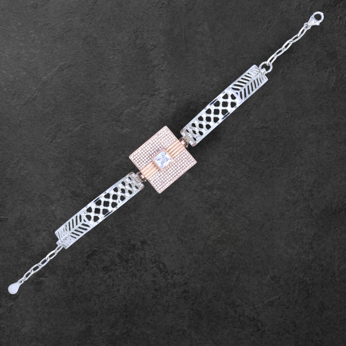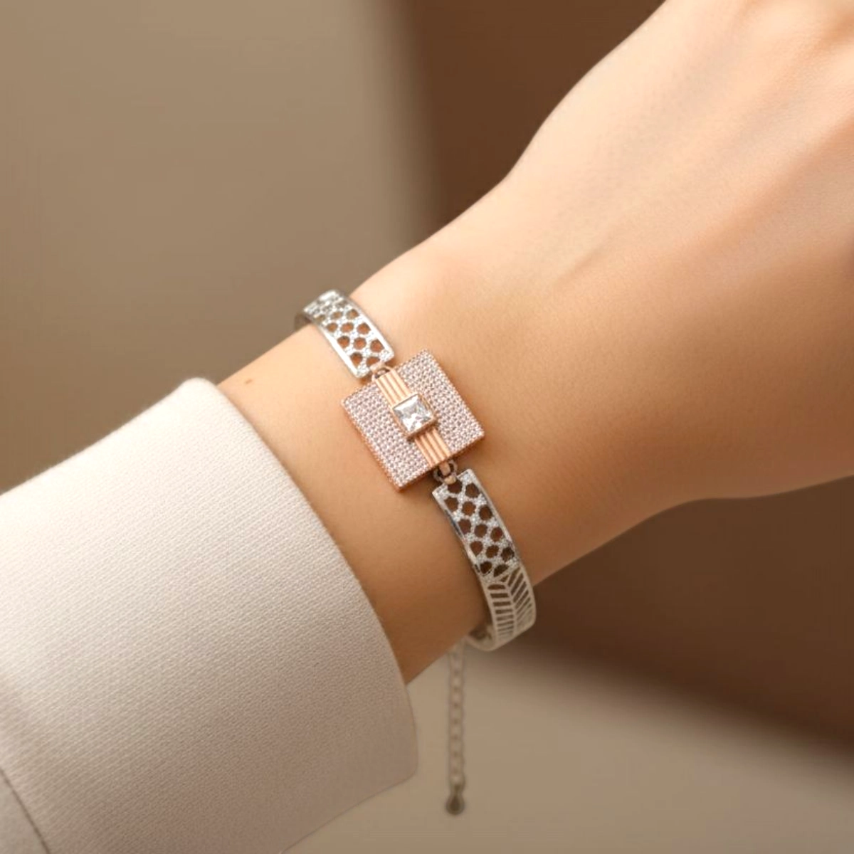 Luxe Dual-Tone Geometric Plaque Bracelet – Rose Gold 925 Silver
