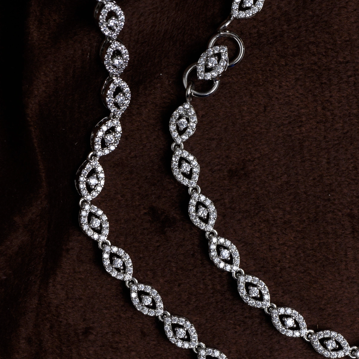 Dazzling and refined, these 925 silver Marquise Leaf Pave Anklets feature continuous marquise-shaped links fully pavé-set with micro CZ for a high-glam, fluid shimmer around the ankle.