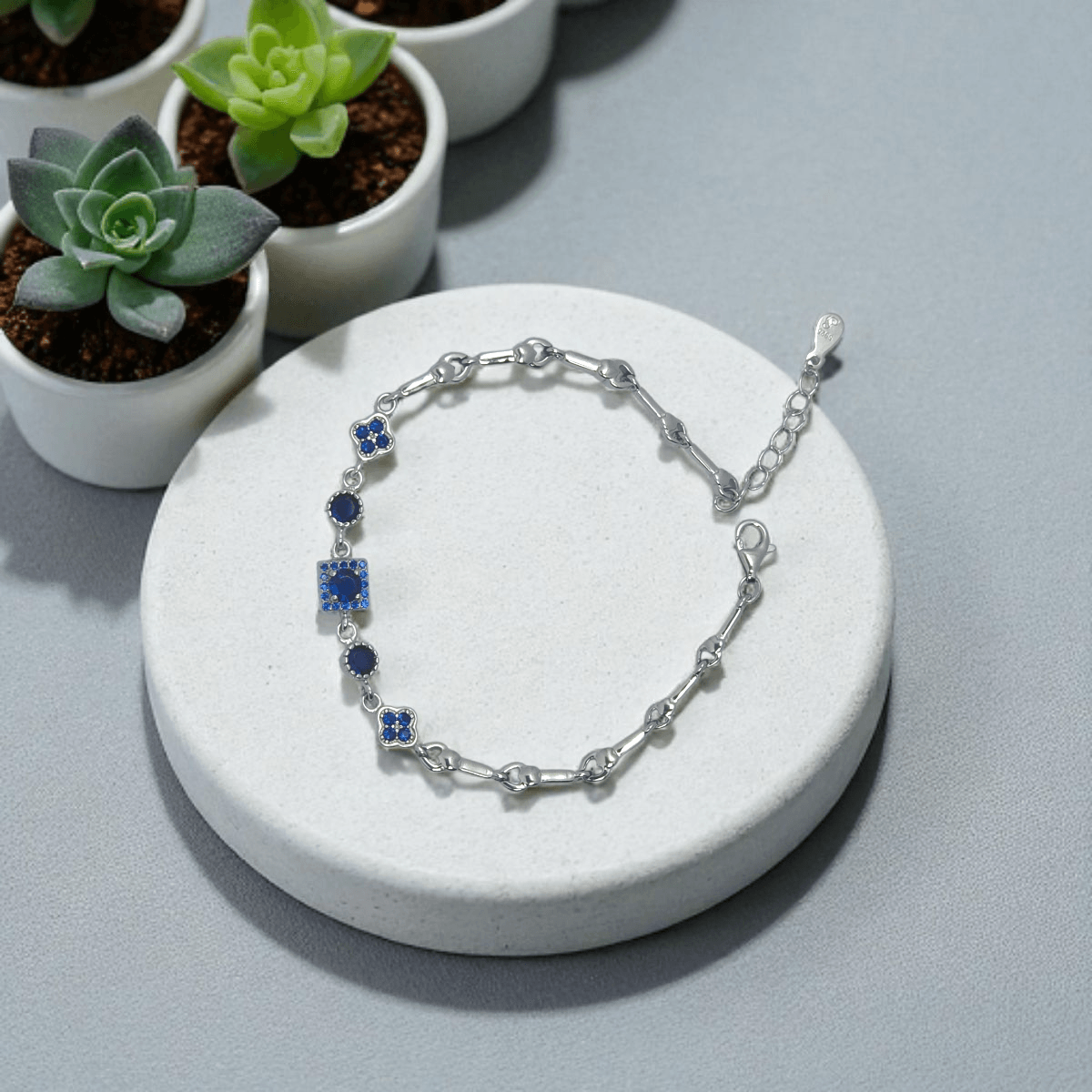 Midnight Mosaic Bracelet – Deep Blue CZ Accents in 925 Silver