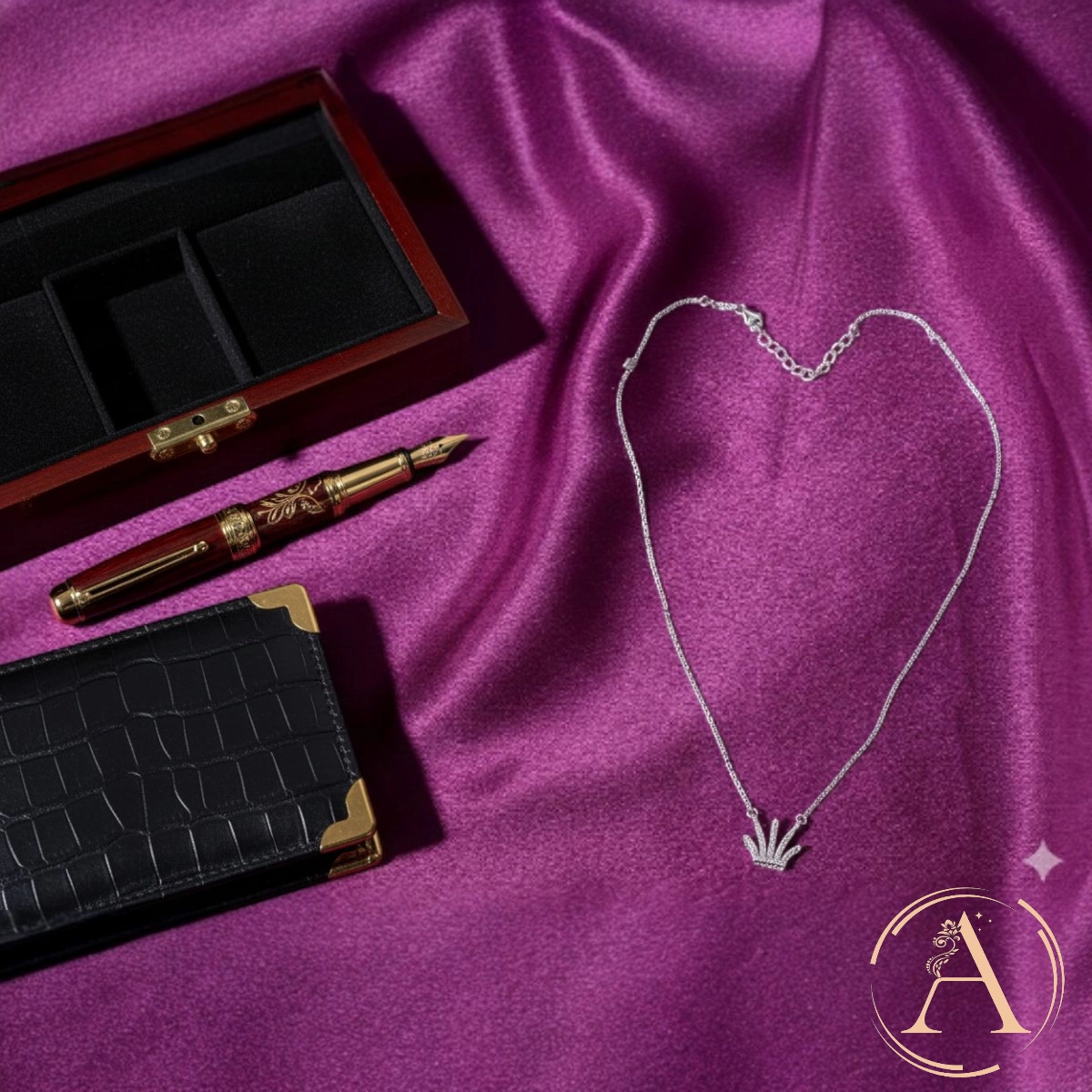 Rule your world with our elegant Mini Crown Tiara Necklace. This charming piece is crafted from premium 925 sterling silver and features a beautifully detailed mini crown pendant, a perfect symbol of empowerment, strength, and grace. The tiara’s graceful arches are meticulously paved with a row of sparkling Cubic Zirconia (CZ) stones, creating a brilliant display of light that truly makes you feel like royalty. Its delicate and understated design is the perfect way to add a touch of regal elegance to any outfit. Wear this necklace as a personal reminder of your self-worth or gift it to the queen in your life.