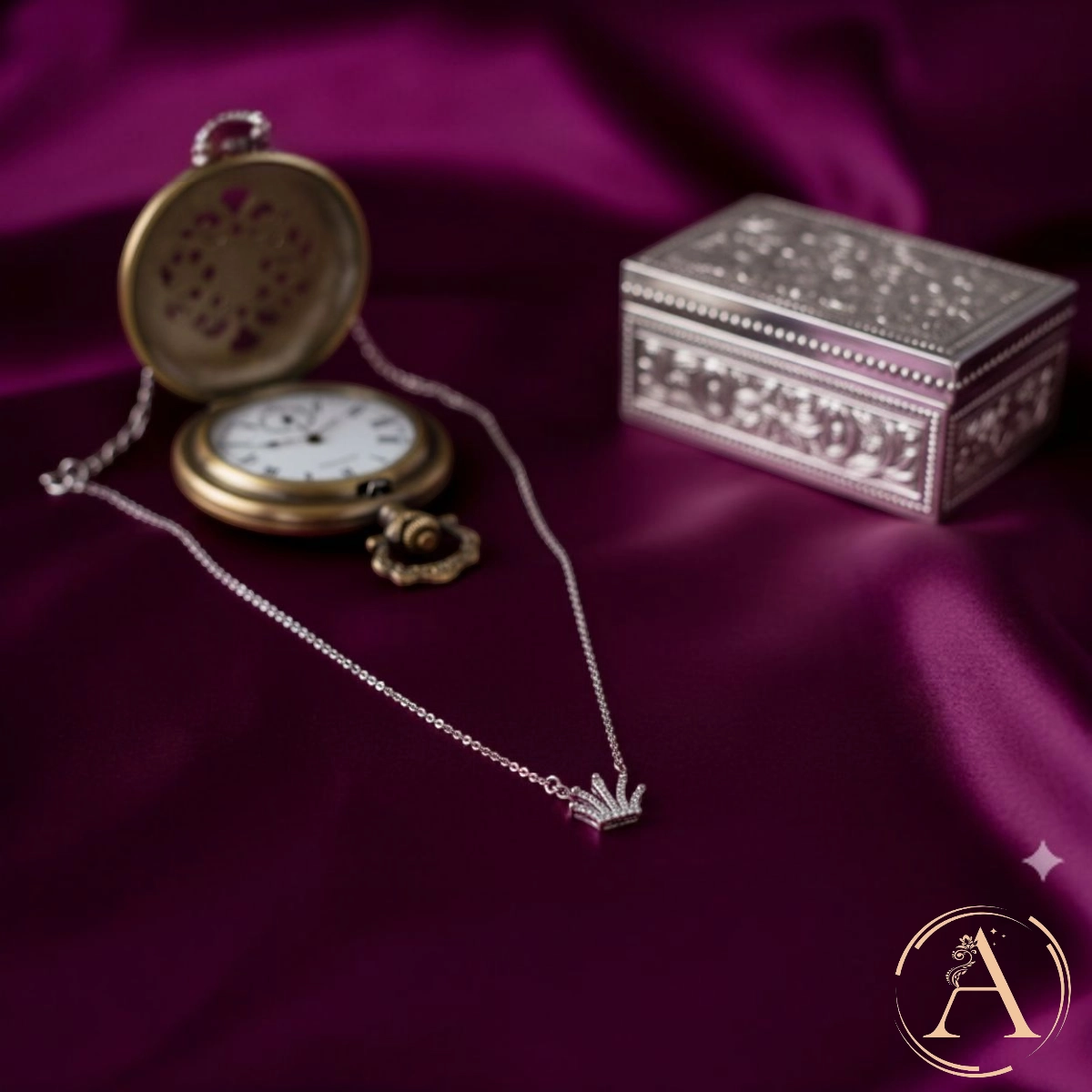 Embrace your inner royalty with this exquisite 925 sterling silver Mini Crown Tiara Necklace, featuring a dazzling mini crown adorned with shimmering CZ accents.