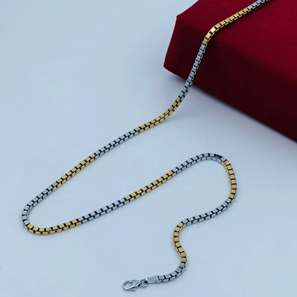 Modern Dual-Tone Box Chain – Gold and 925 Silver