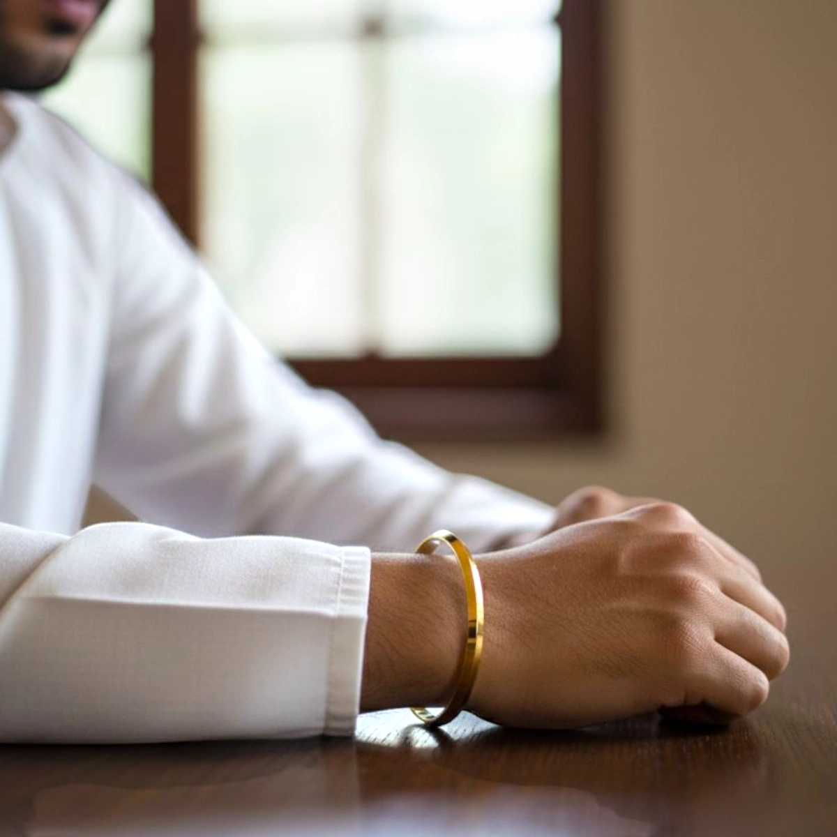 Modern Geometric Gold Polish Kada for Men – 925 Silver