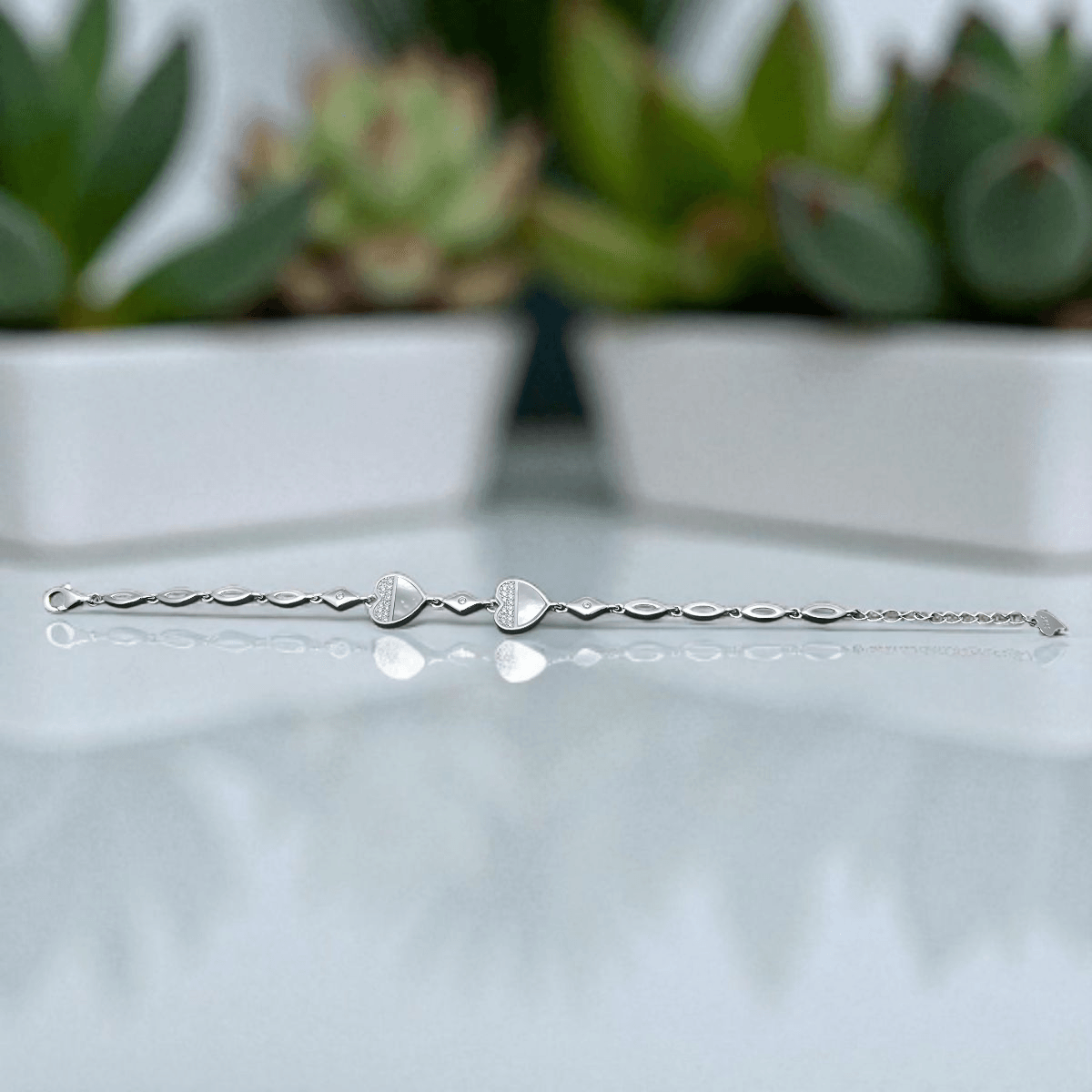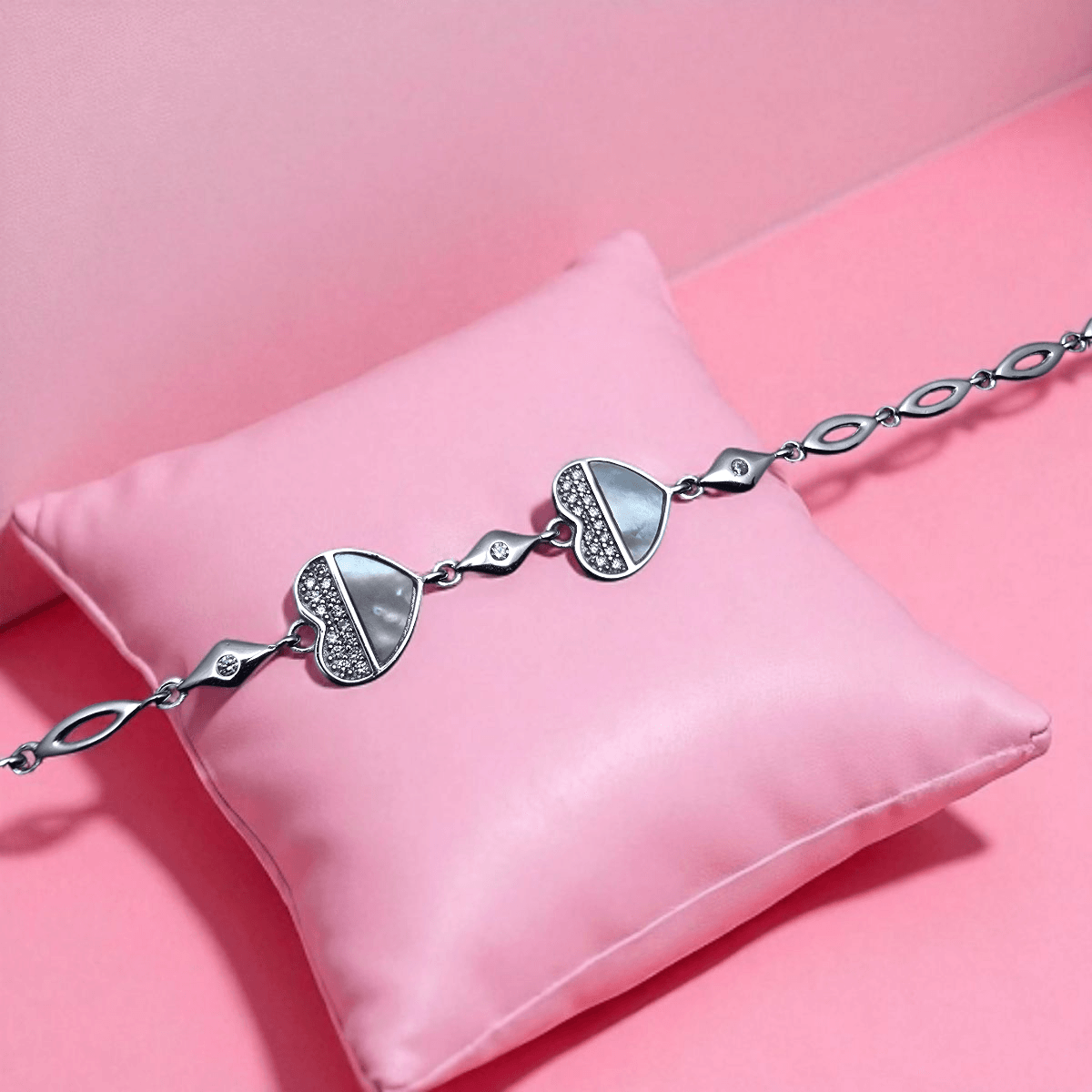 Mother-of-Pearl Heart Charm Bracelet – 925 Silver Elegance