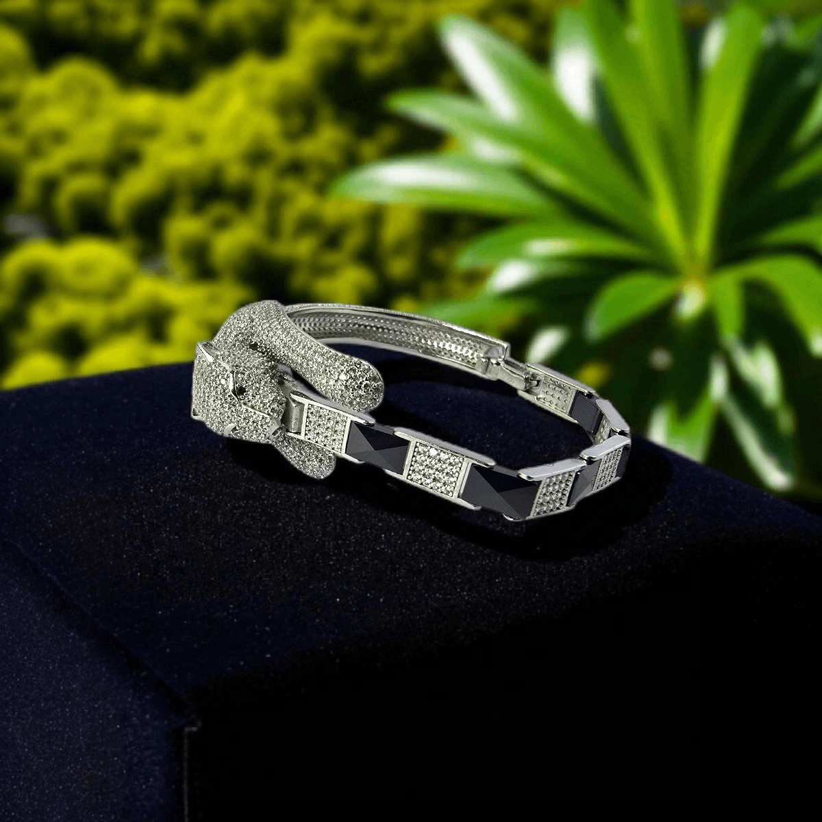 Mufasa Jaguar Bracelet – Onyx, Ice & White Crystal in 925 Silver