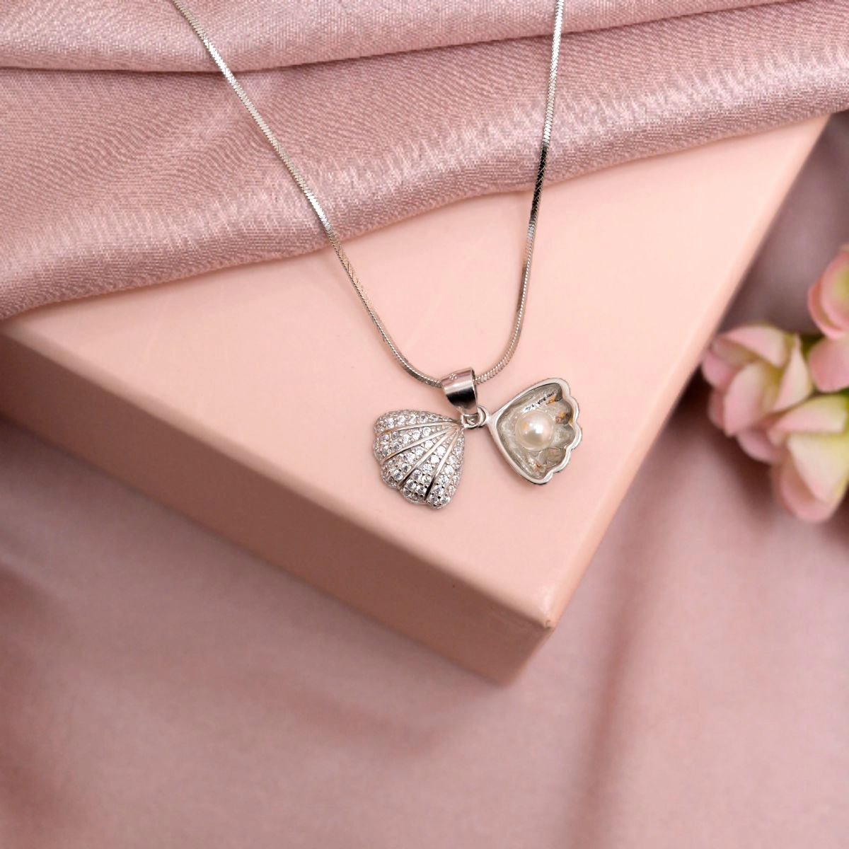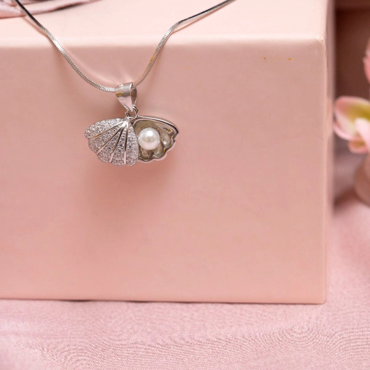 Pearl Oyster Shell Pendant Necklace – 925 Silver
