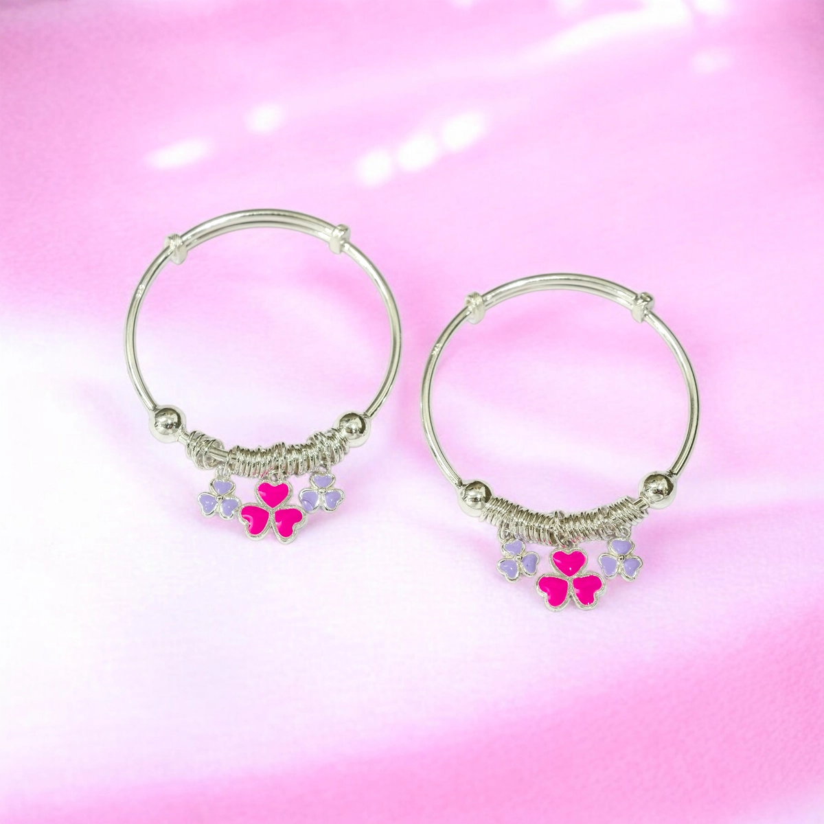 Adjustable Silver Pink Purple Floral Kids Kadali – 925 Silver