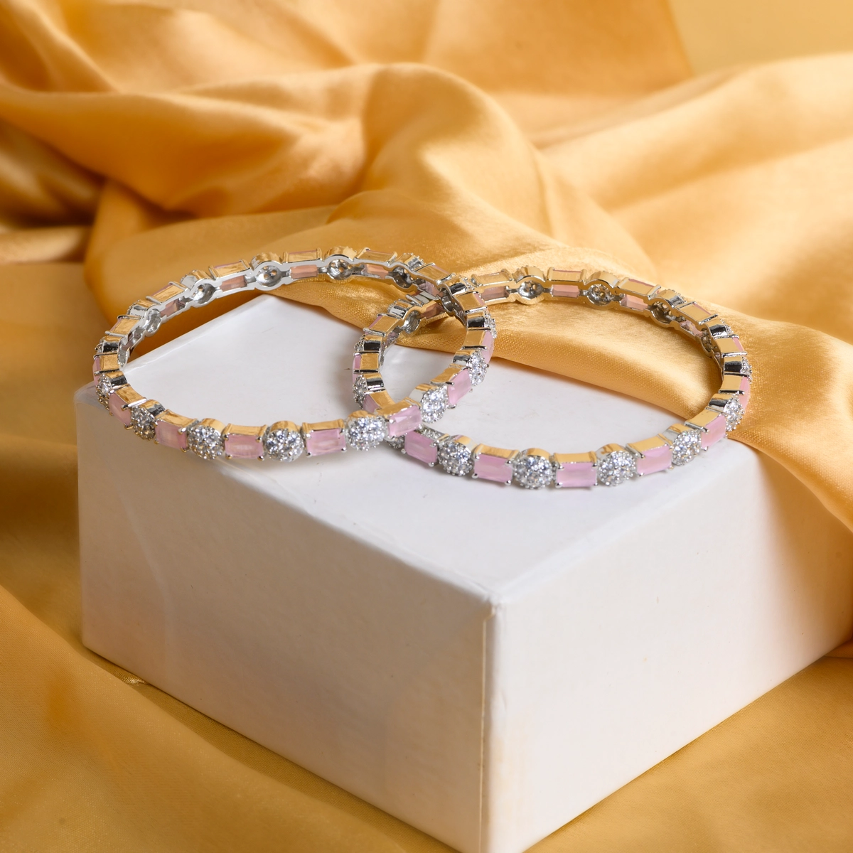 1. A Pair of Pink Stone CZ Bangles