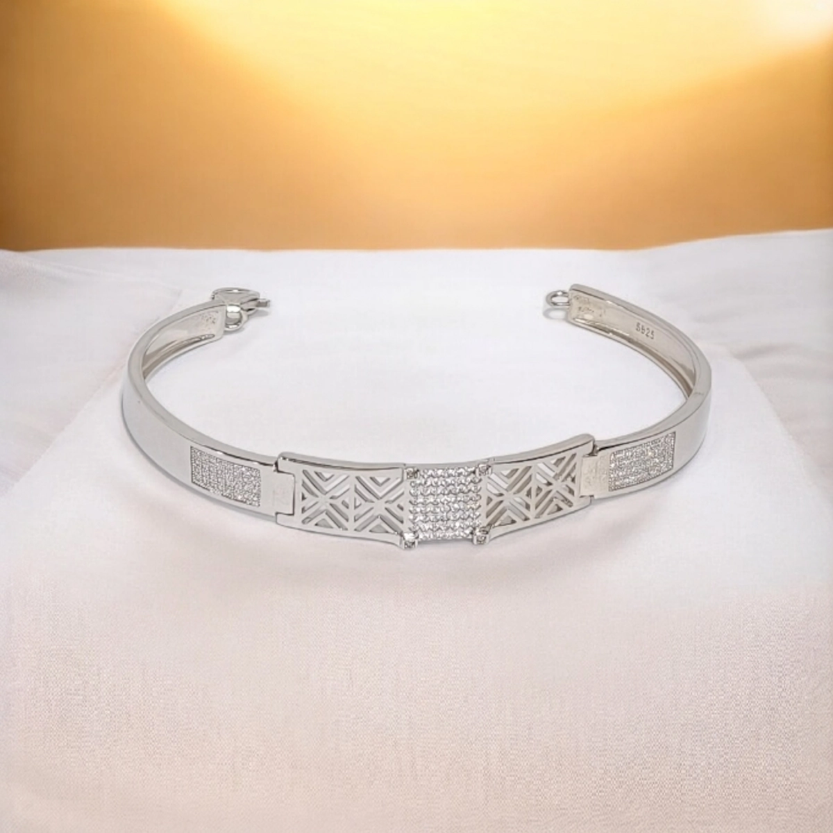 Premium Geometric CZ Diamond Kada for Men – 925 Silver