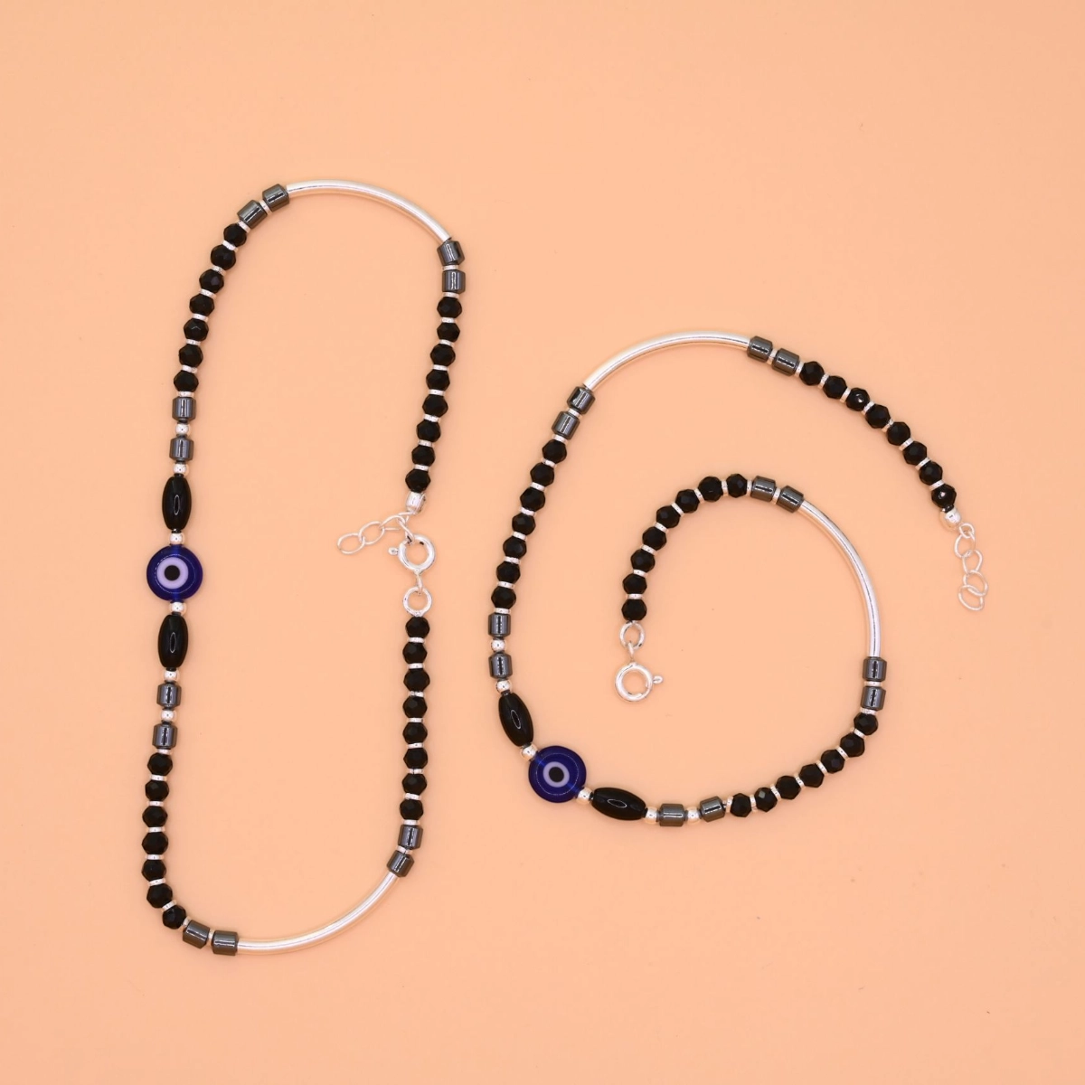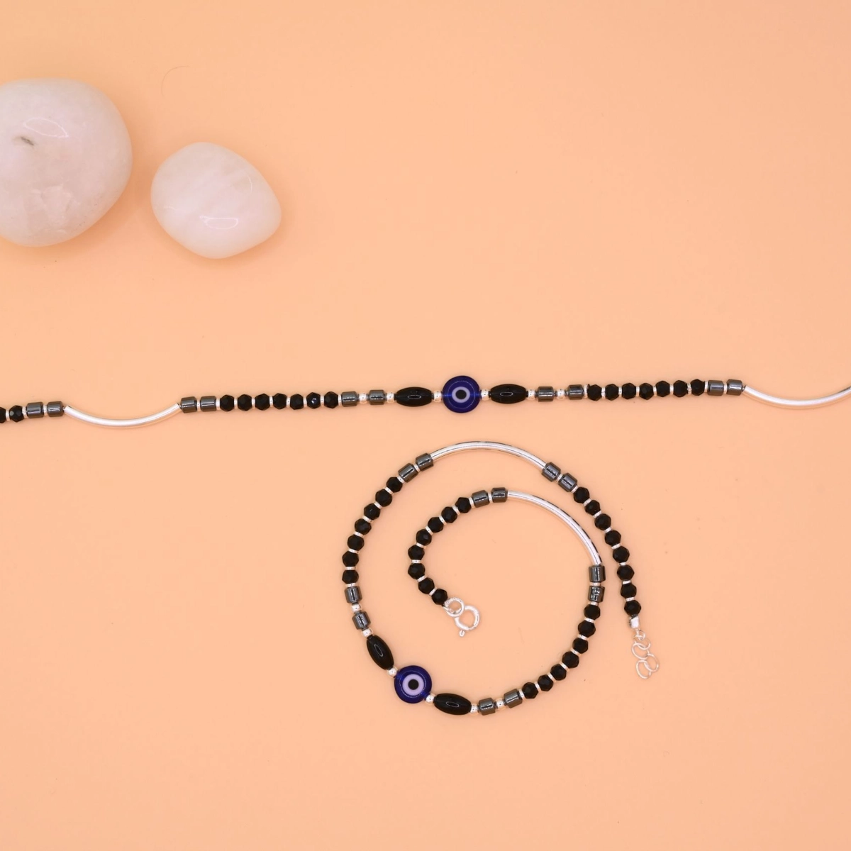 - A pair of Protective Black Bead Nazariya Anklets