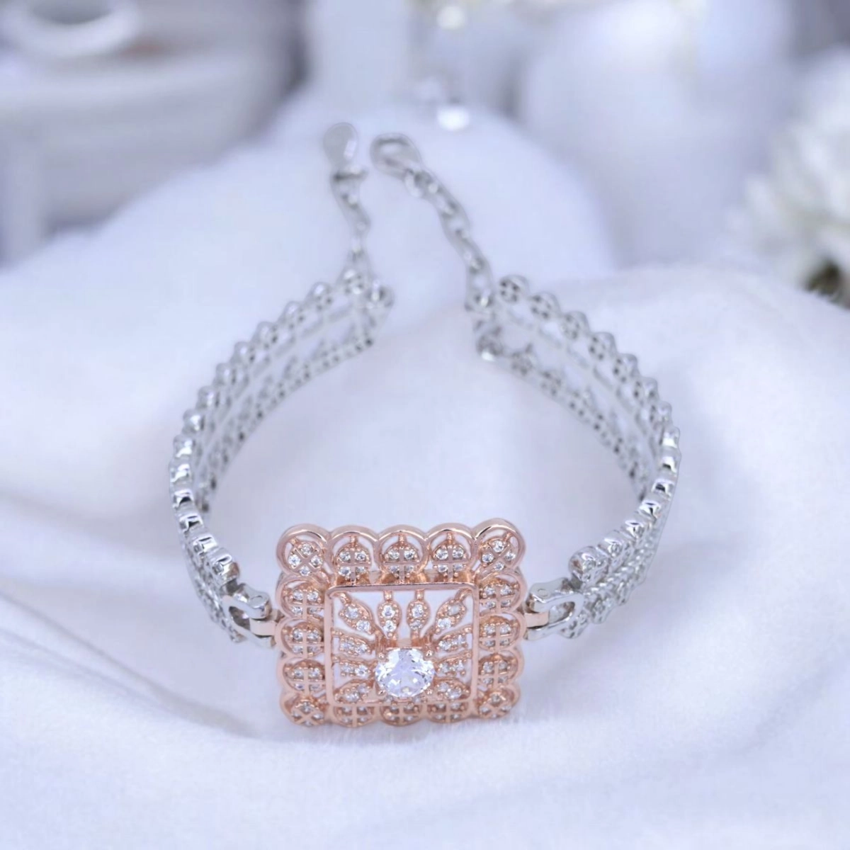 Regal Dual-Tone CZ Statement Bracelet – Rose Gold 925 Silver
