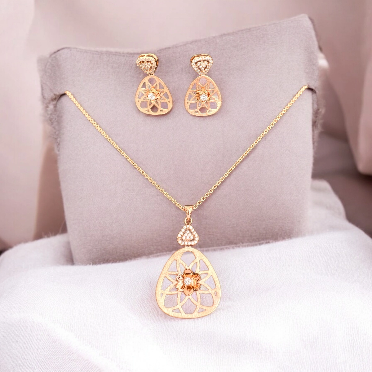 Rose Gold Openwork Teardrop Necklace Set – 925 Silver
