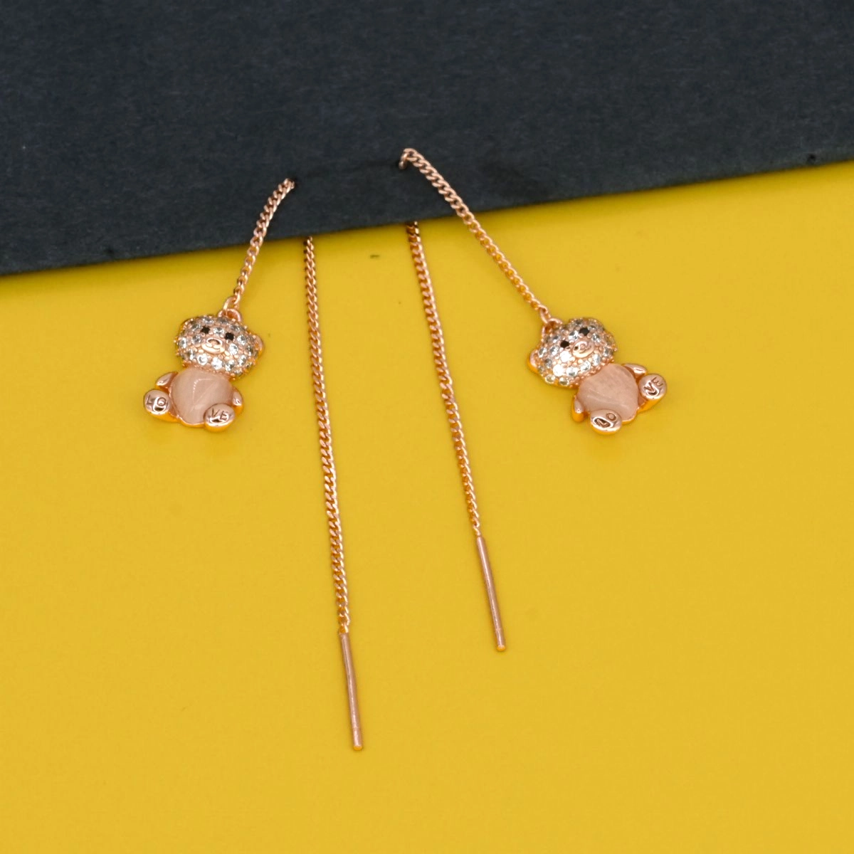 - A pair of Rose Gold Teddy Bear Threader Earrings