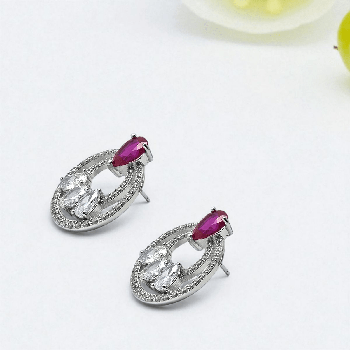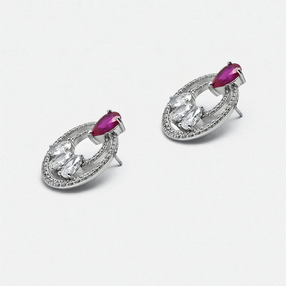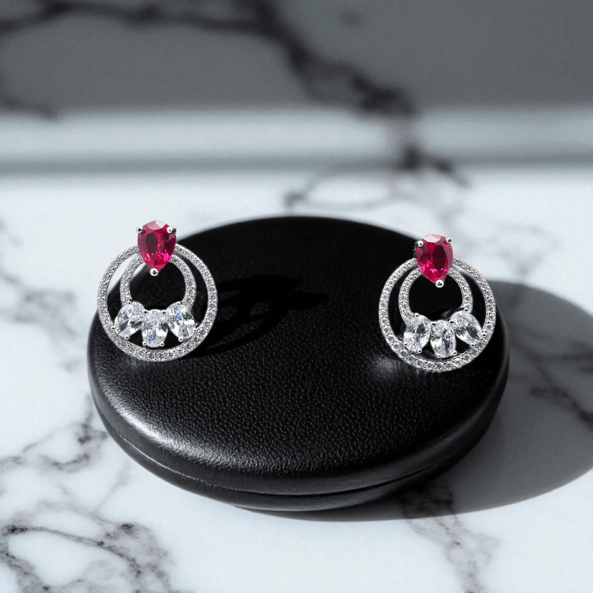 Ruby Orbit Studs – Crimson Teardrop Sparkle in 925 Silver