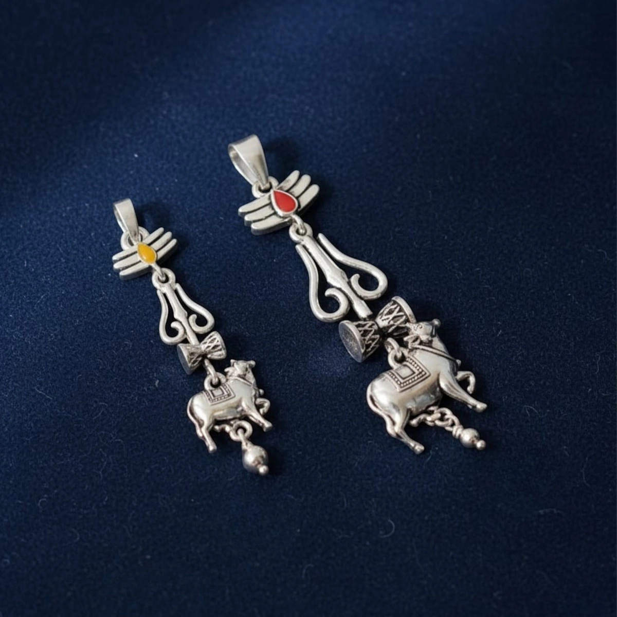 Shankara's Divine Symbols Pendant (Trishul, Damru, Nandi) Chain– 925 Silver