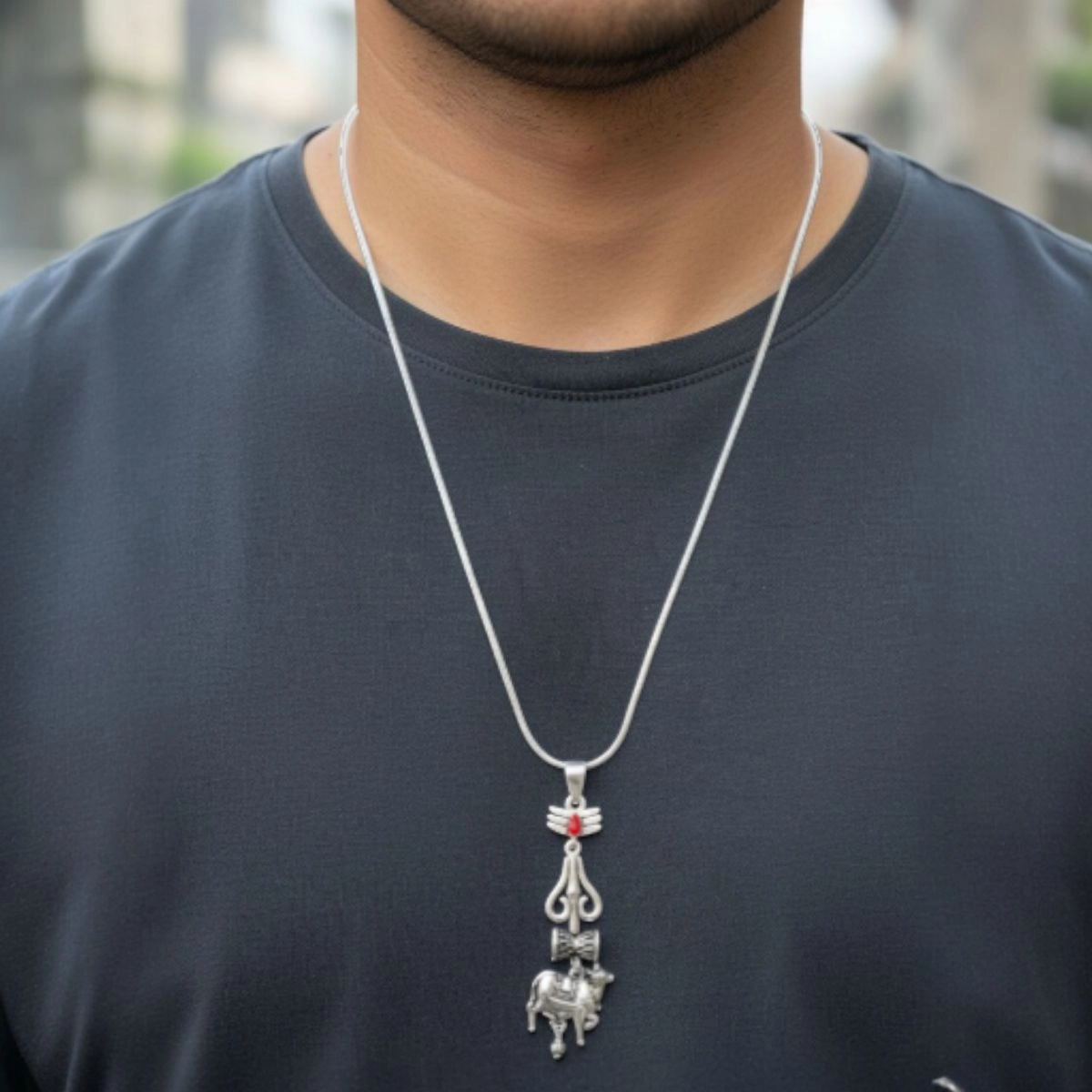 - A Shankara’s Divine Symbols Pendant (Trishul, Damru, Nandi) Chain
