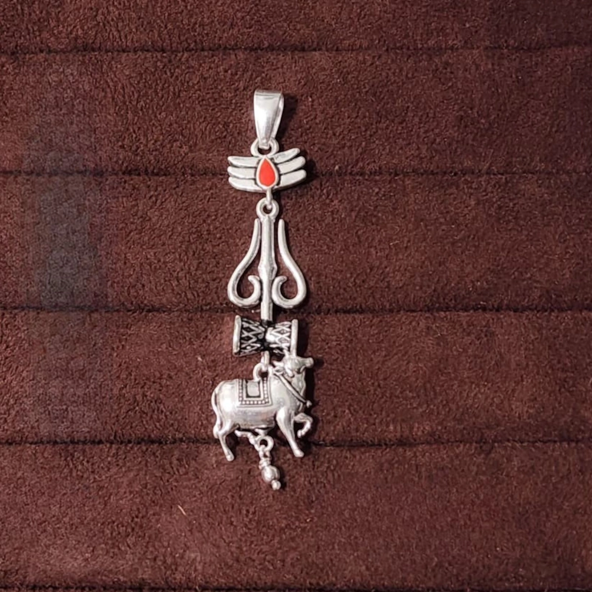 - Design: Multi-symbol pendant (Tripundra, Trishul, Damru, Nandi)