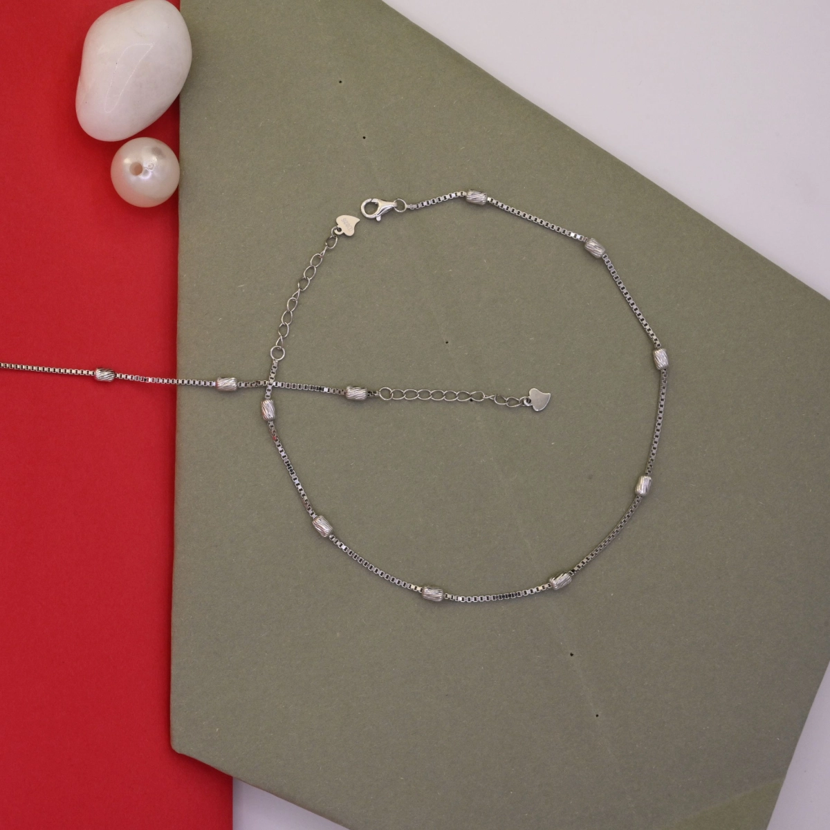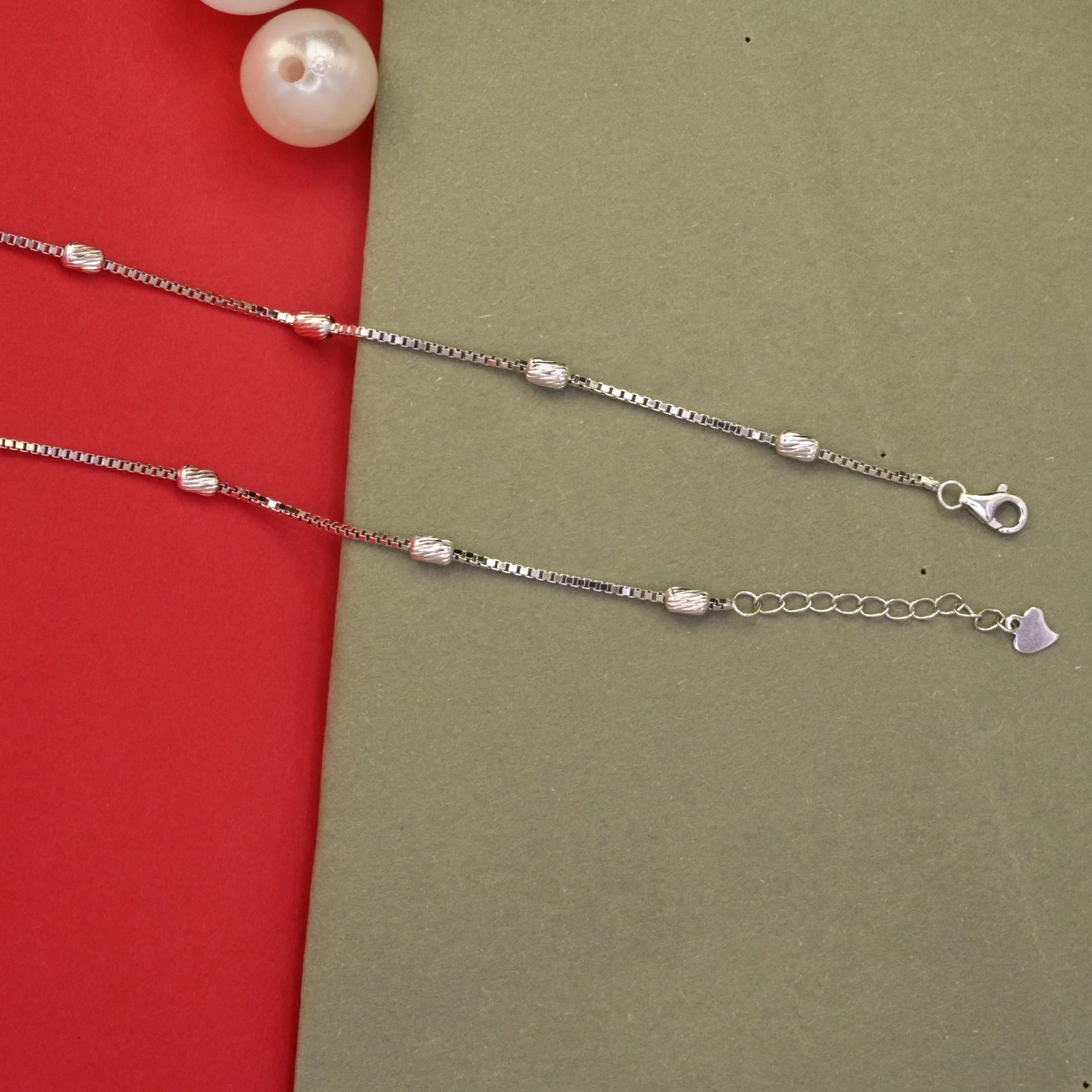 Sparkling Diamond-Cut Bead Anklets – 925 Silver