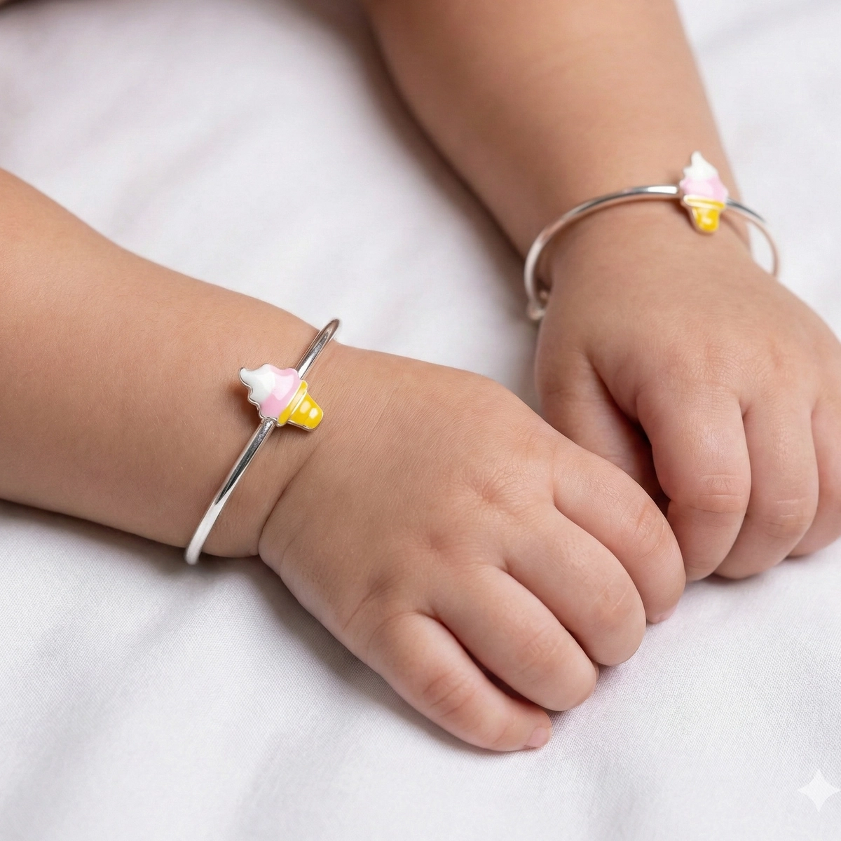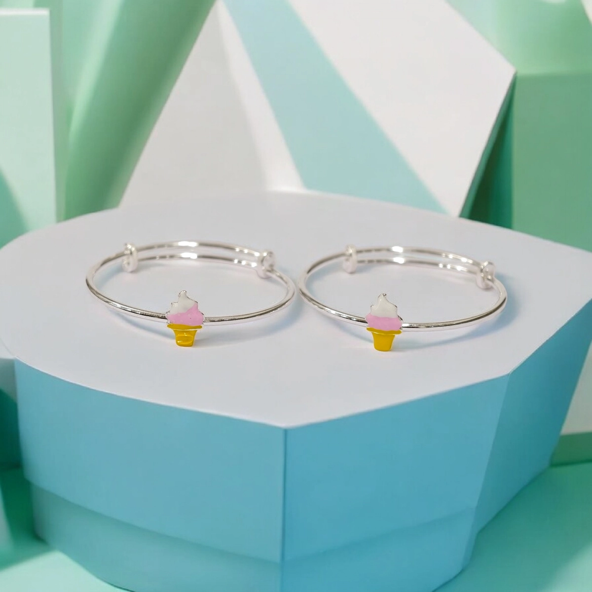 The minimalist, single-charm design ensures the bangle remains lightweight and fuss-free for active kids. Crafted from high-polished 925 Sterling Silver, these pink white ice cream kids kadali feature a smart, adjustable sliding mechanism that ensures a perfect fit as your child grows.