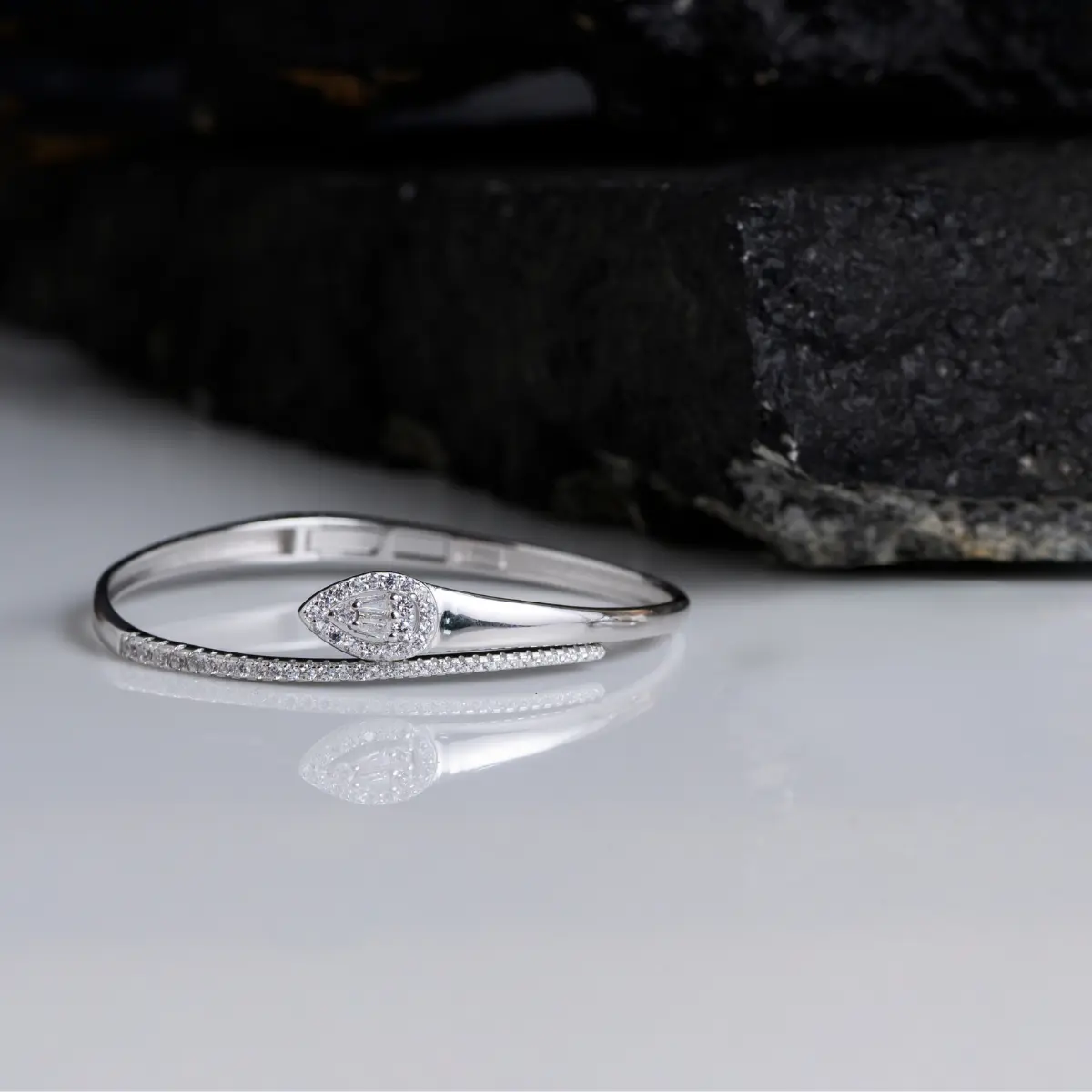 Teardrop CZ Bracelet – Pave Shine Sleek Wrap in 925 Silver