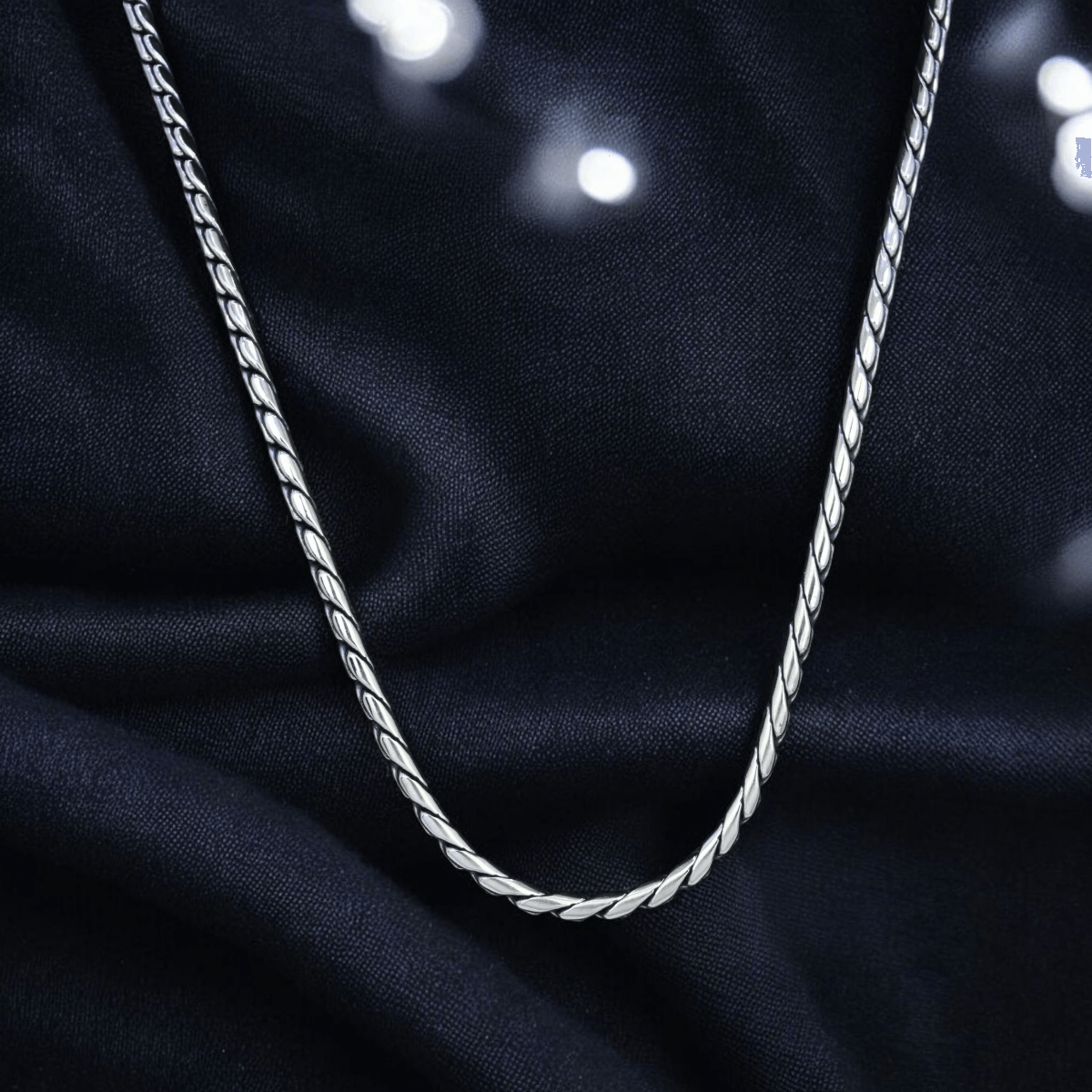 Embodying strength and timeless style, the Textured Franco Chain is a true classic in men’s jewellery. This exceptional piece is crafted with intricately woven V-shaped links, creating a solid, four-sided chain that is renowned for its durability and distinctive look. An oxidized finish is expertly applied to enhance the depth and complexity of the weave, giving the chain a bold, textured character that stands out. Completed with a decoratively engraved clasp, every element of this chain speaks to quality craftsmanship and enduring style.