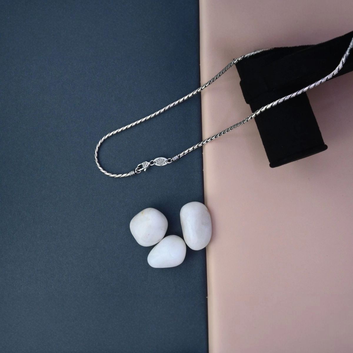 • Rich Texture: The intricate V-shaped links and oxidized finish create a rich, tactile, and visually deep appearance.