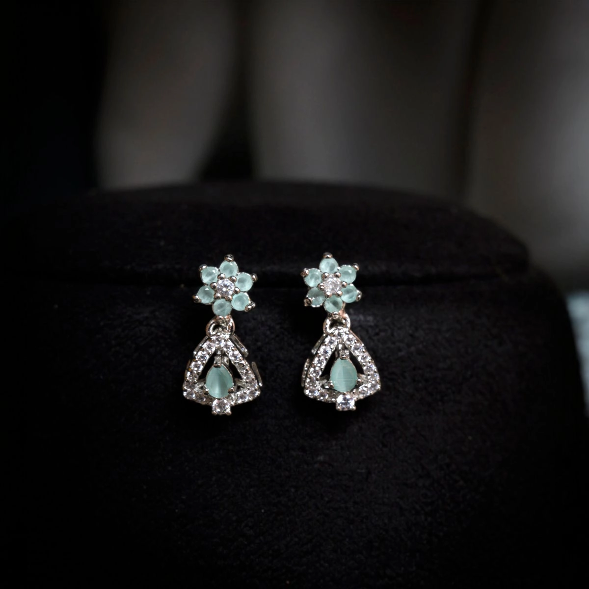 - Earrings Style: Floral cluster stud with trillion-cut drop