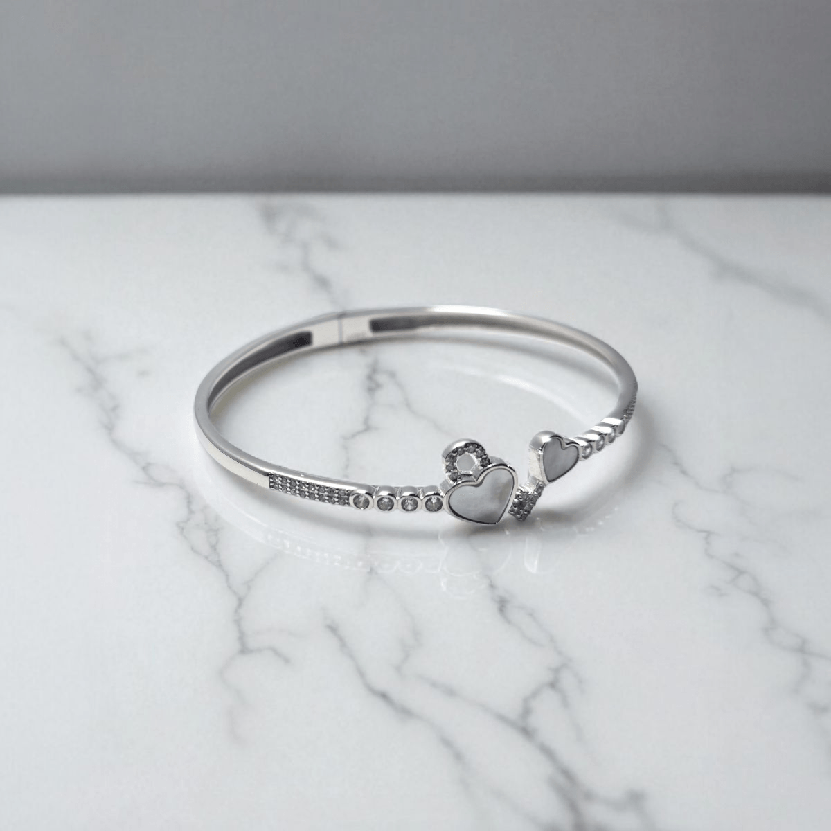 Twin Hearts Kada – Love in Shell & Shine, in 925 Silver