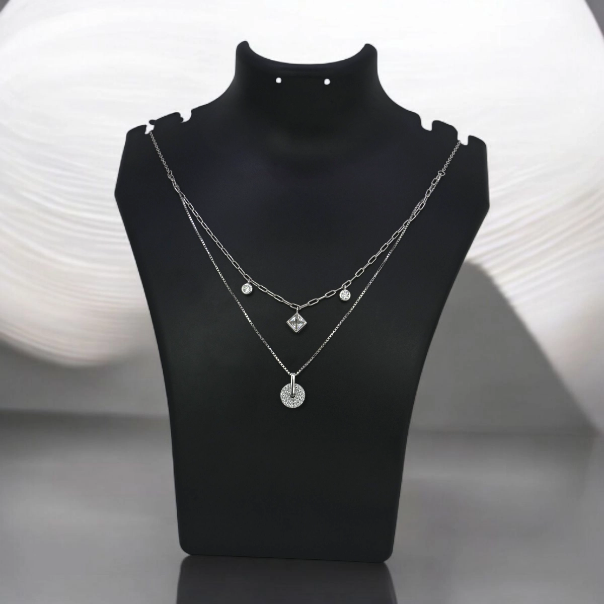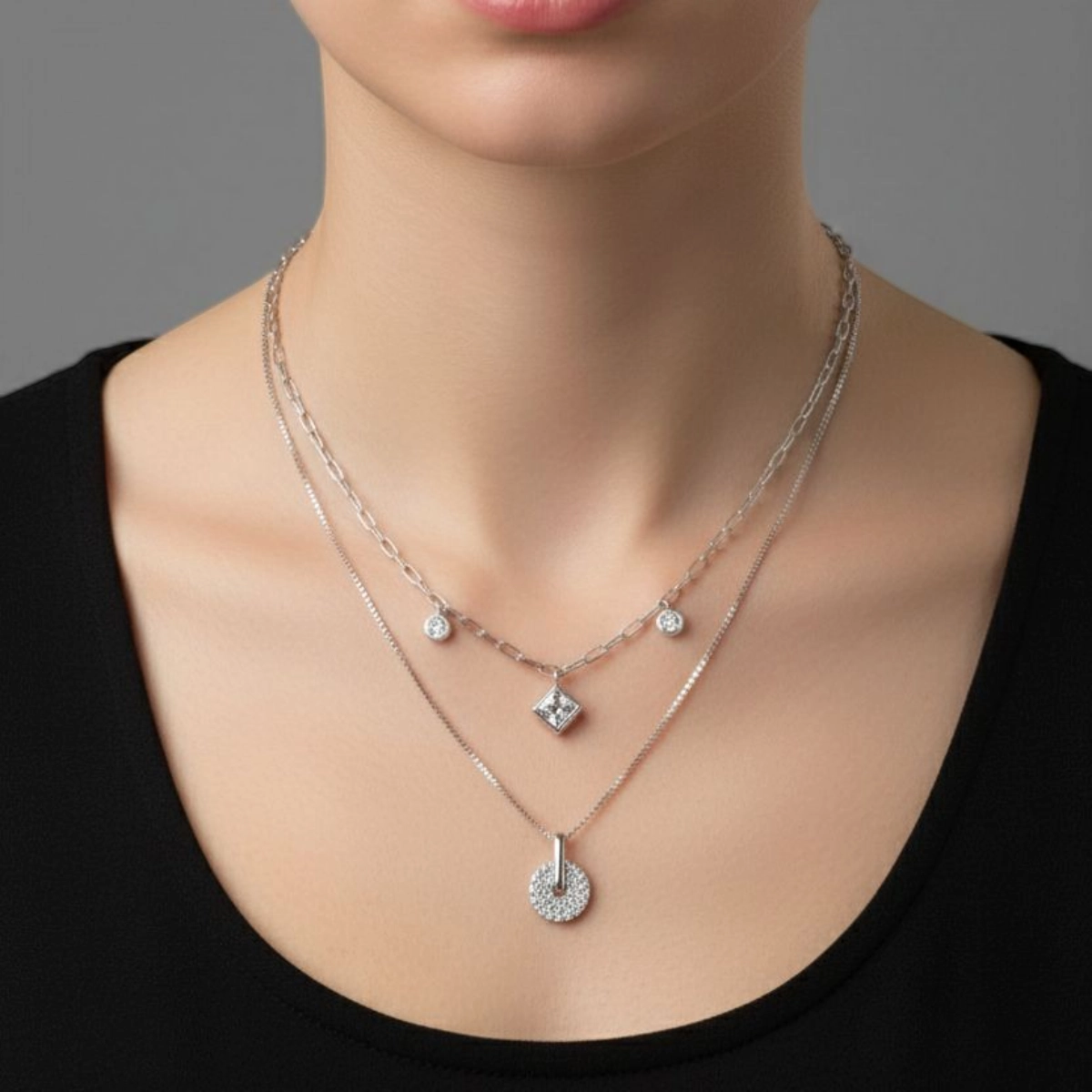 Two-Layer Mixed CZ Charm Necklace – 925 Silver